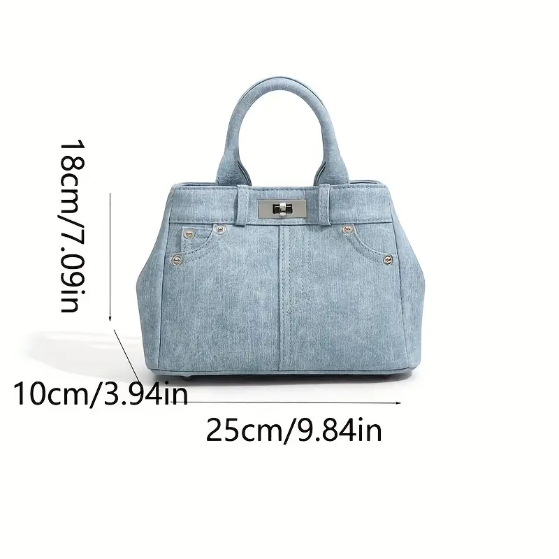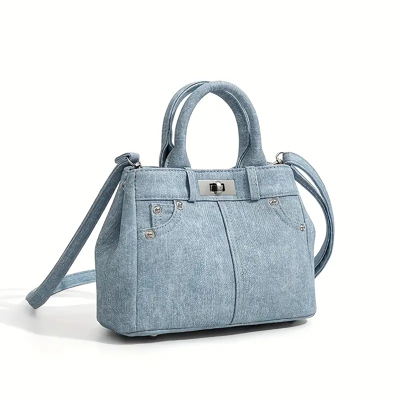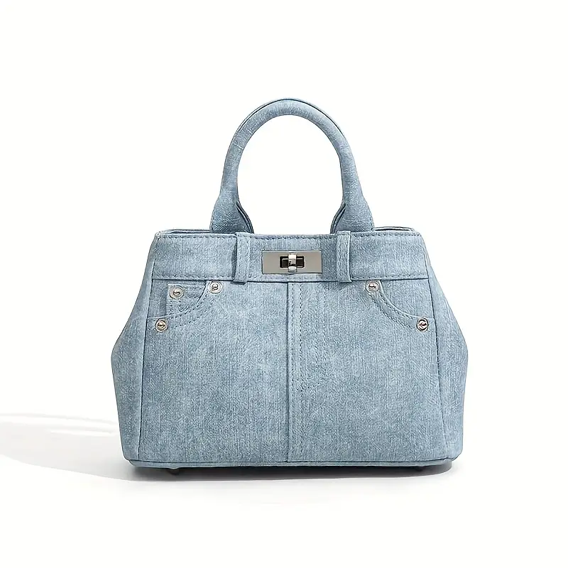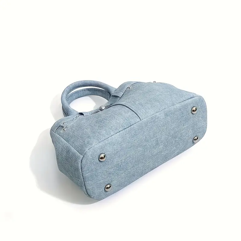 حقيبة يد نسائية عصرية، بلون أزرق فاتح بتصميم عملي وعصري، مثالية للاستخدام اليومي