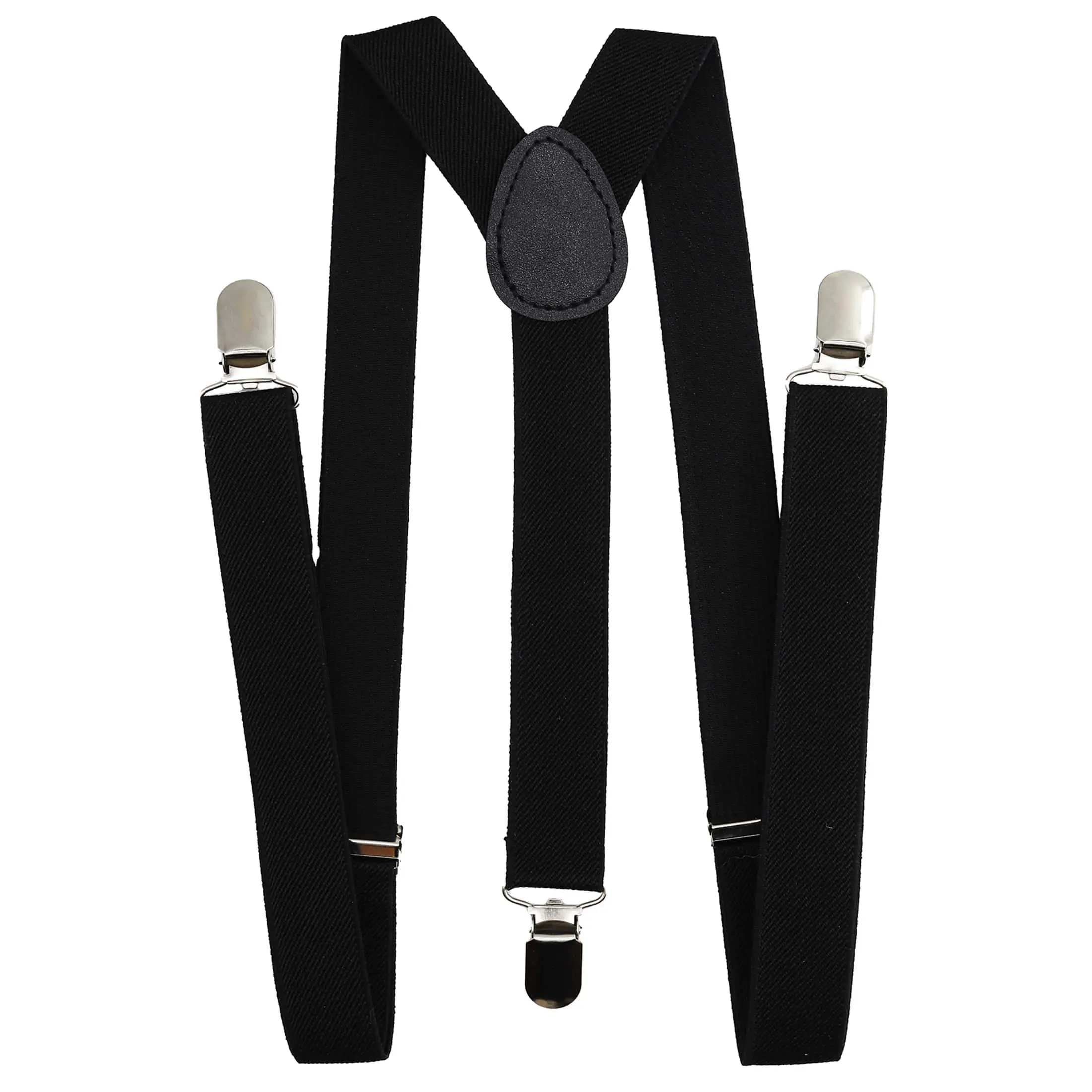 Men’s Black Adjustable Suspenders – Solid Color with 3 Durable Clips for Formal and Casual Wear