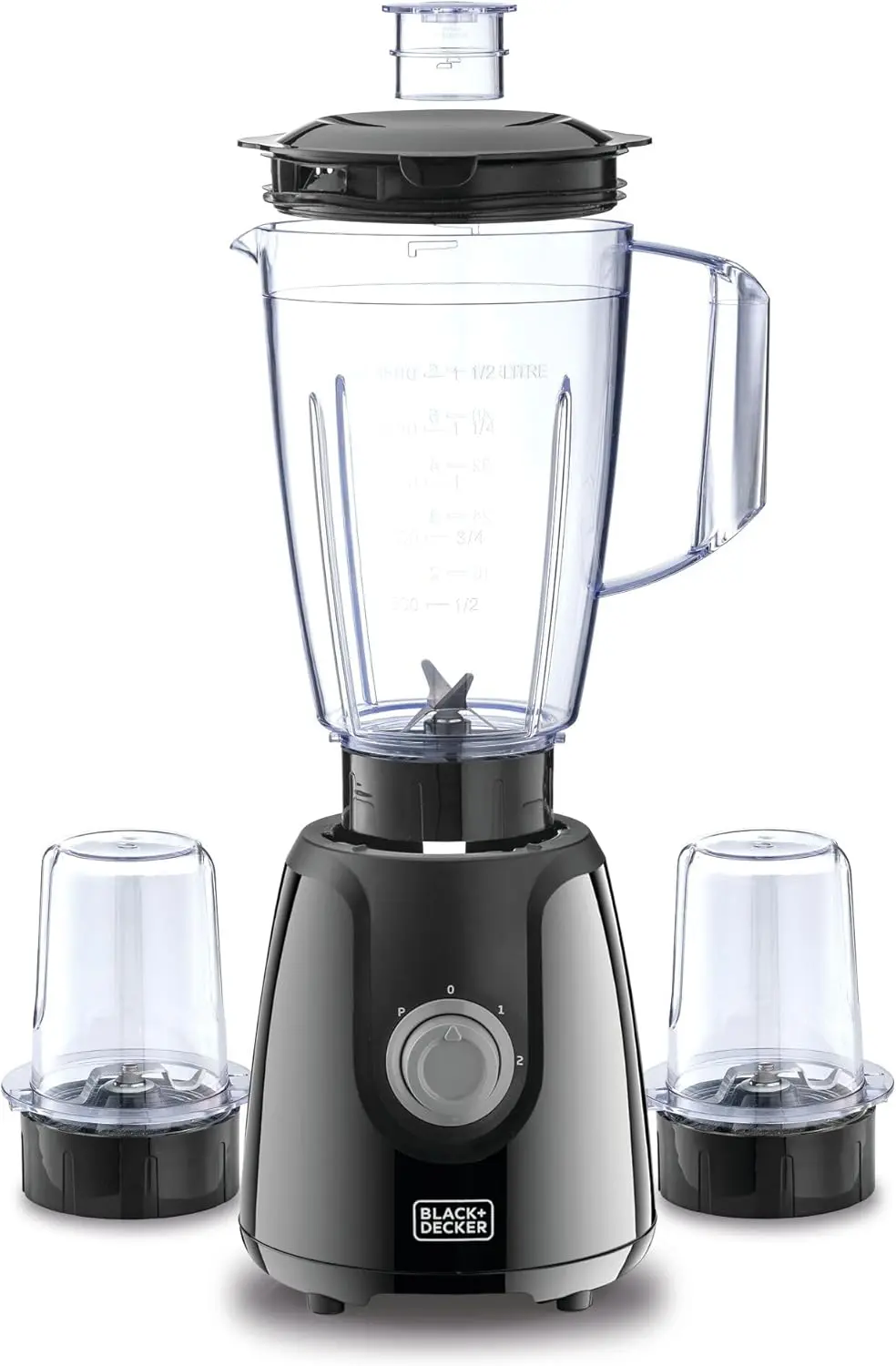 خلاط مع مطحنة من بلاك اند ديكر بقدرة 400 واط وسعة 1.5 لتر مع 2 مطحنة طحن 300 مل وشفرتين من الستانلس ستيل واثنين من التحكم في النبض لطحن اعشاب القهوة