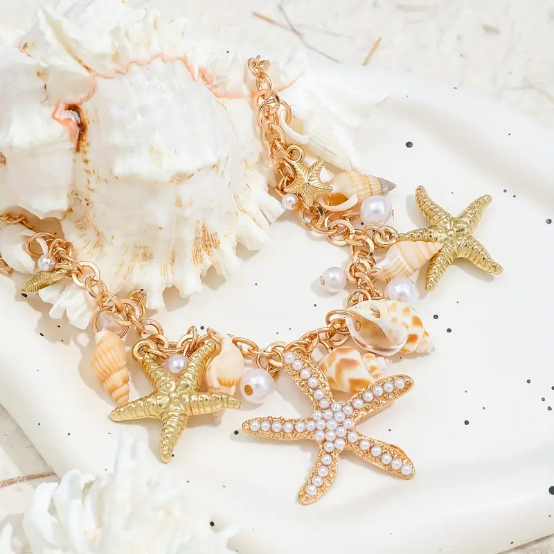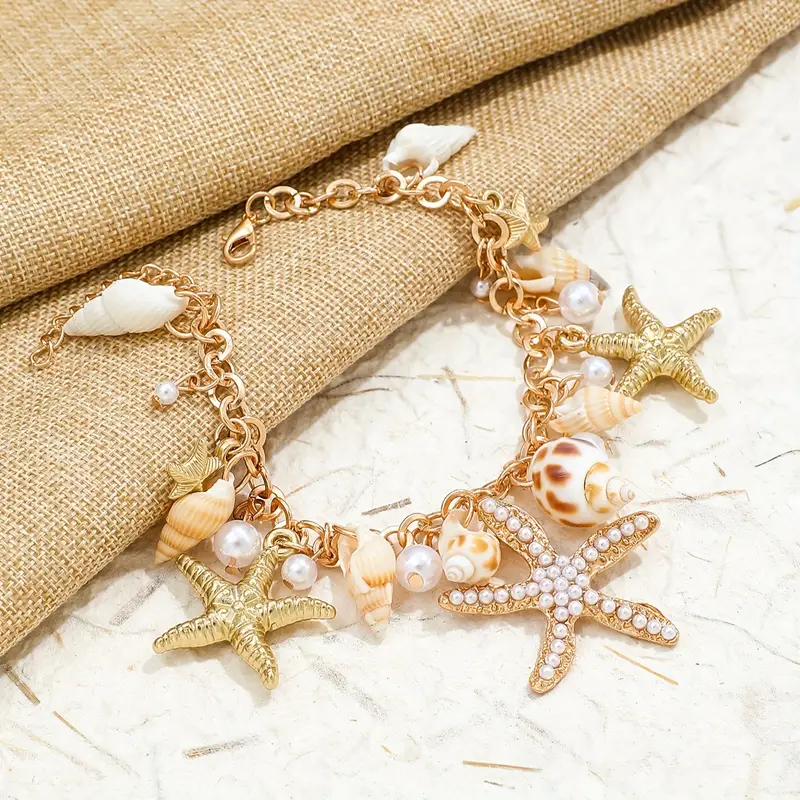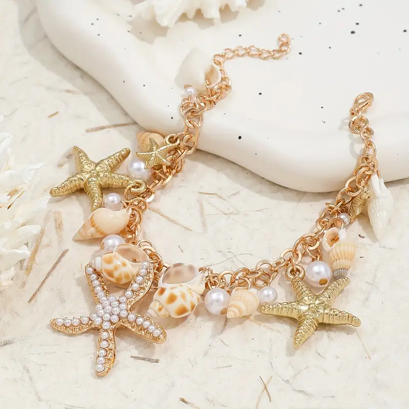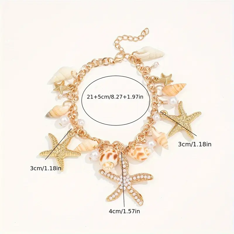 أضيفي لمسة من الجاذبية والتفرد إلى إطلالتك الصيفية مع أنكليت أنيق مستوحى من الطراز البوهيمي. تصميم فاخر يجمع بين تقليد اللؤلؤ والسلاسل الشوكية، مصنوع بعناية من سبيكة مطلية بالذهب، ليرافقك بأناقة على الشاطئ أو في الإطلالات الكاجوال اليومية.