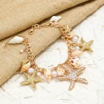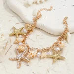 خلخال نسائي بوهيمي مطلي بالذهب، لؤلؤ صناعي وسلاسل أنيقة لإطلالات الشاطئ، قابل للتعديل ليناسب جميع مقاسات الكاحل