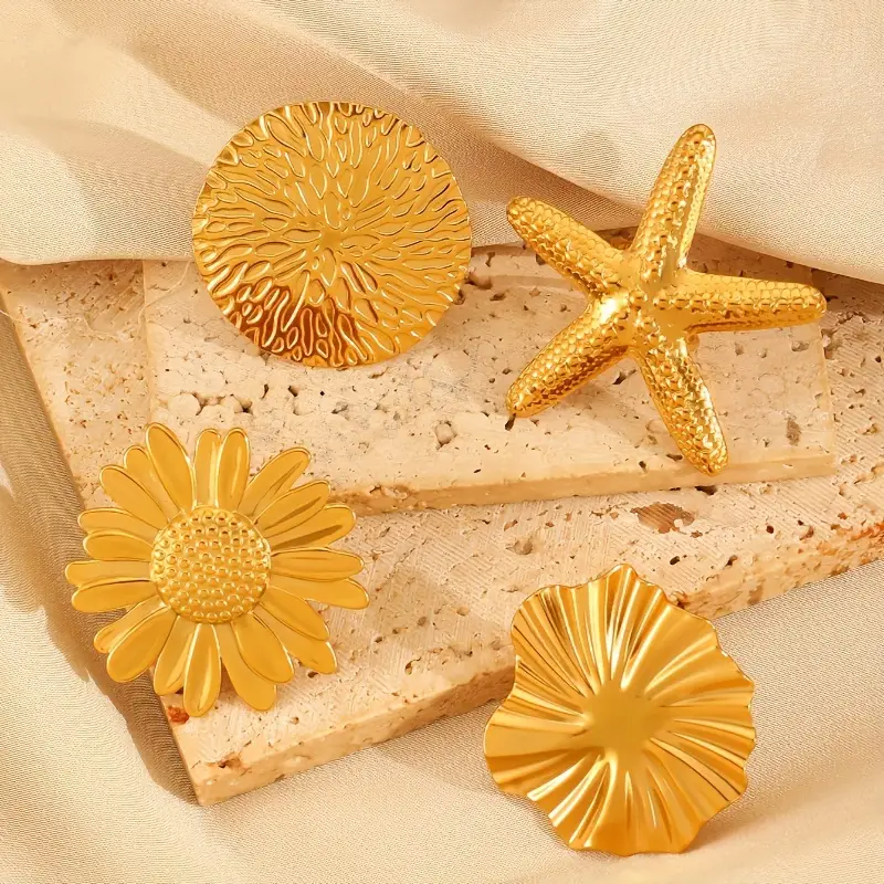 تجمع هذه المجموعة الأنيقة المكوّنة من 4 خواتم مفتوحة بين البساطة والتميز، بتصاميم مستوحاة من الطبيعة مثل زهرة دوار الشمس ونجم البحر، مصنوعة من الفولاذ المقاوم للصدأ المطلي بلون ذهبي عتيق، ما يجعلها قطعة مجوهرات مثالية للمرأة العصرية التي تجمع بين الأناقة والمتانة.