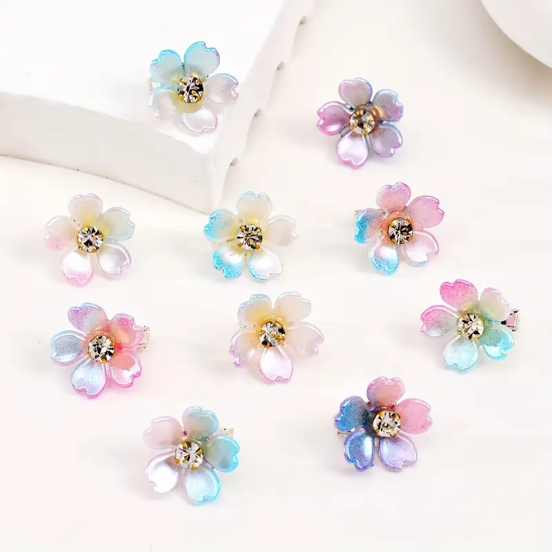 خواتم شعر نسائية مزينة بزهور الراين، مجموعة 10 قطع لإطلالة أنيقة يومية ومناسبات خاصة