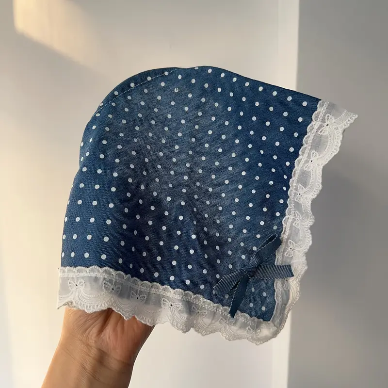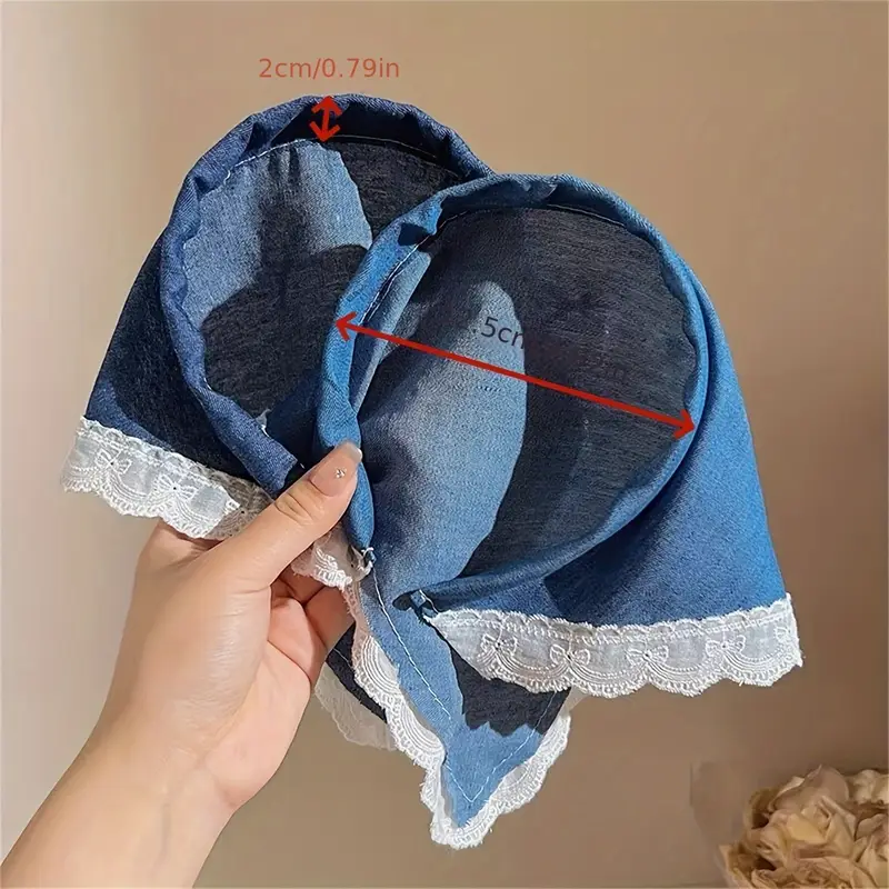 رباط رأس نسائي صيفي، دنيم أزرق ودانتيل بربطة أنيقة، يناسب الاستخدام اليومي أو المناسبات البسيطة