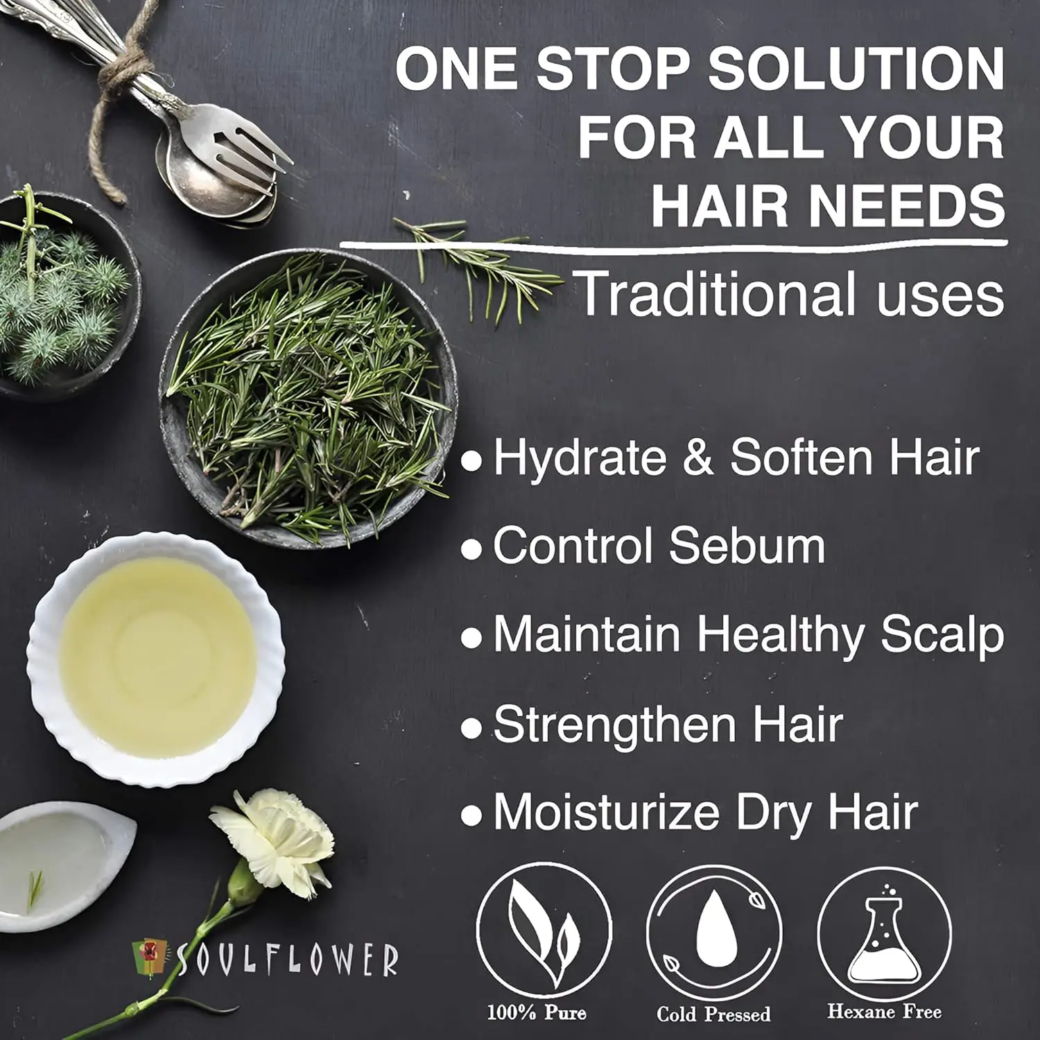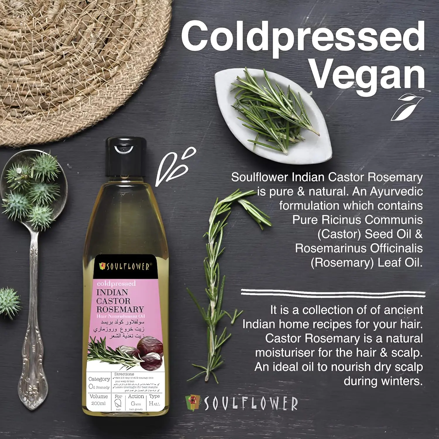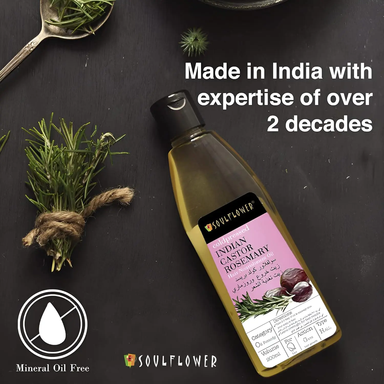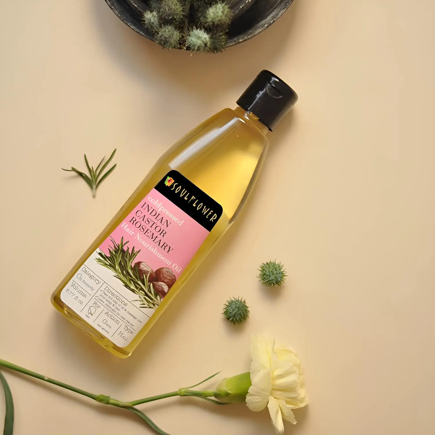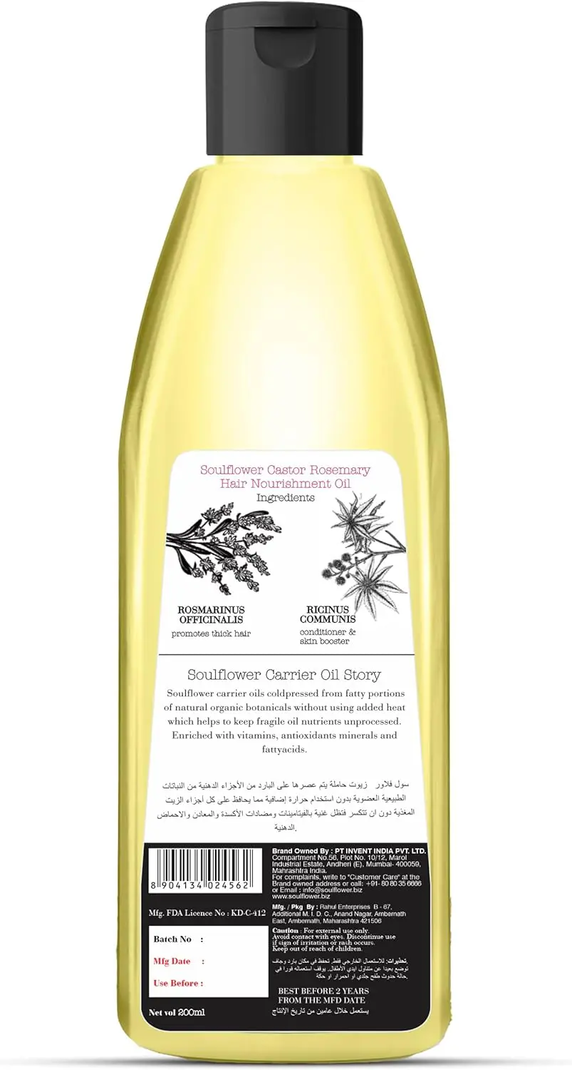 - يعد زيت شعر إكليل الجبل والخروع من سول فلاور تركيبة طبيعية ايورفيدية هندية نقية نباتية وعضوية مُعالجة على البارد، وتحتوي على زيت بذور ريسينوس كوميونيس (الخروع) وزيت أوراق روزمارينوس اوفيسيناليس (إكليل الجبل).