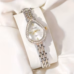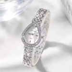 ساعة كوارتز نسائية بيضاوية مرصعة بحجر الراين، تصميم أنيق للاستخدام اليومي والهدايا