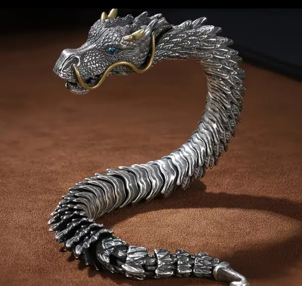 سوار رجالي بتصميم تنين عتيق يرمز للقوة والشجاعة، لمسة كلاسيكية مع طابع عصري.