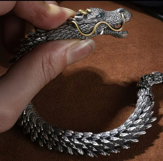 سوار رجالي عتيق بتصميم تنين 2025 – إكسسوار أنيق لعشاق الأسلوب العصري والجذاب