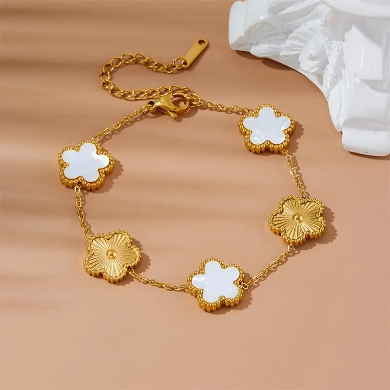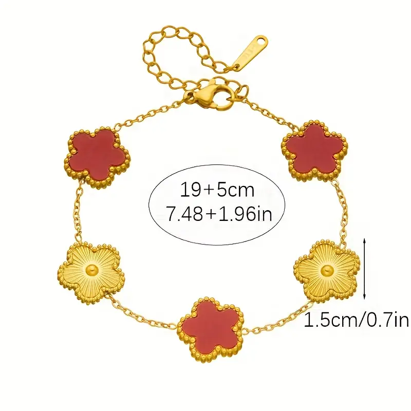 أضيفي لمسة من الرقي والرمزية إلى إطلالتك مع هذا السوار الذهبي على شكل زهرة، الذي يجمع بين الجمال الكلاسيكي والعملية.