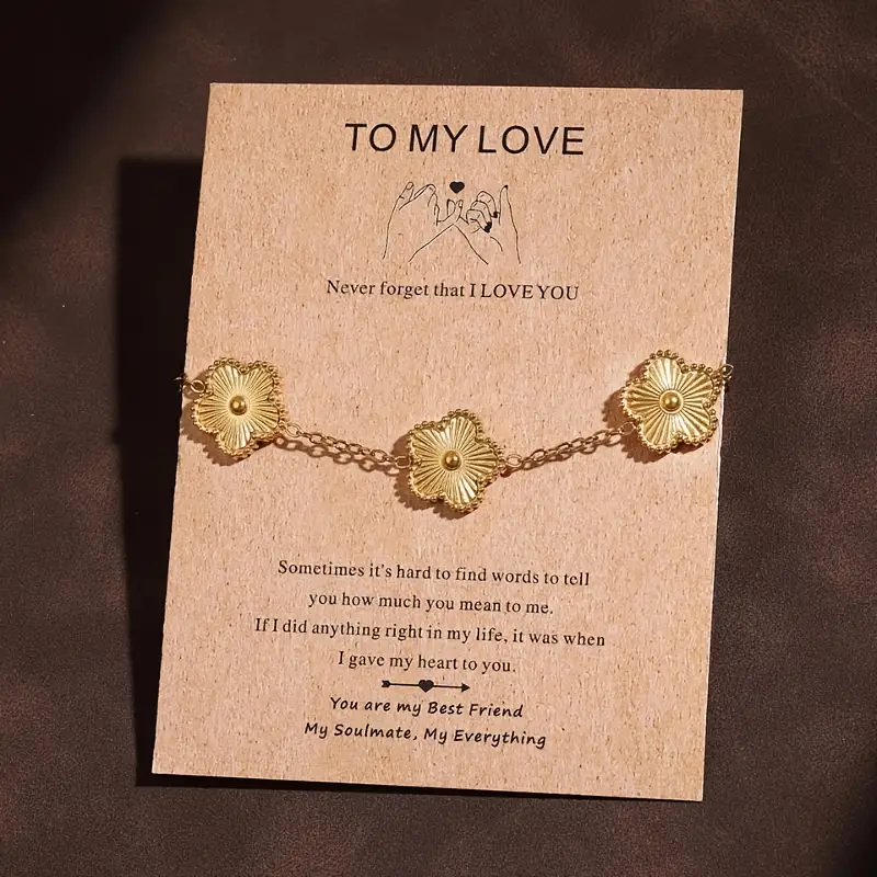 سوار زهري نسائي ذهبي أنيق مع بطاقة حب، مناسب للارتداء اليومي والمناسبات الخاصة