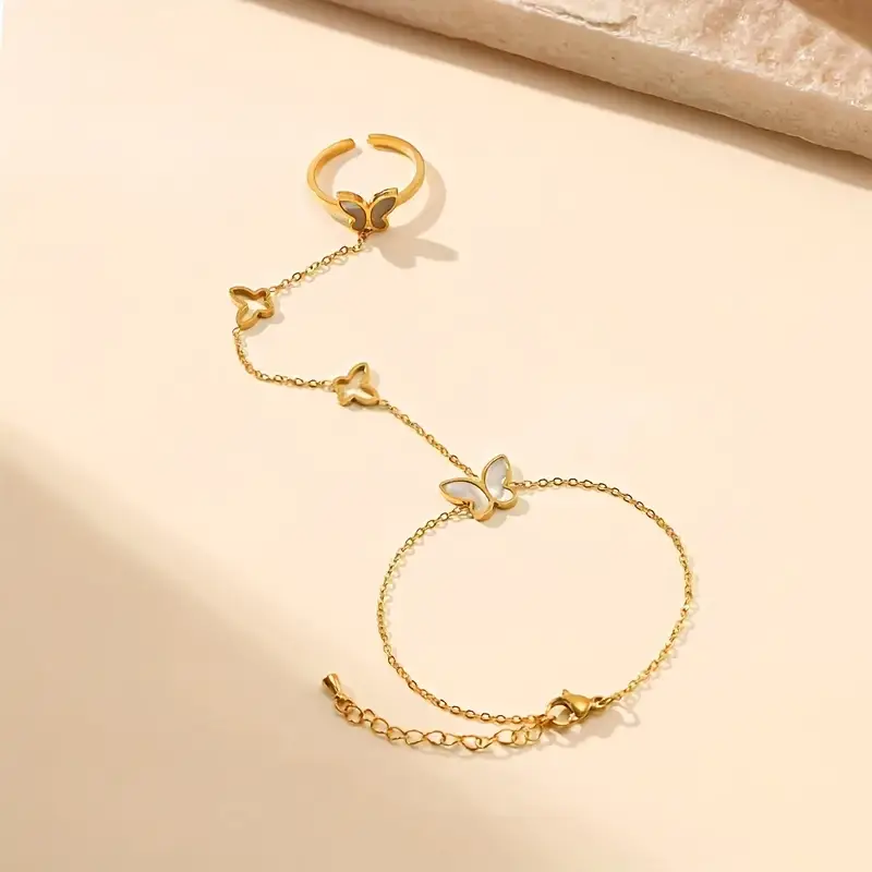 يتميز بتصميم فراشة بسيطة تضيف لمسة من السحر والنعومة إلى معصمك، مع سلسلة رفيعة تضفي توازنًا مثاليًا بين الأناقة والعصرية.