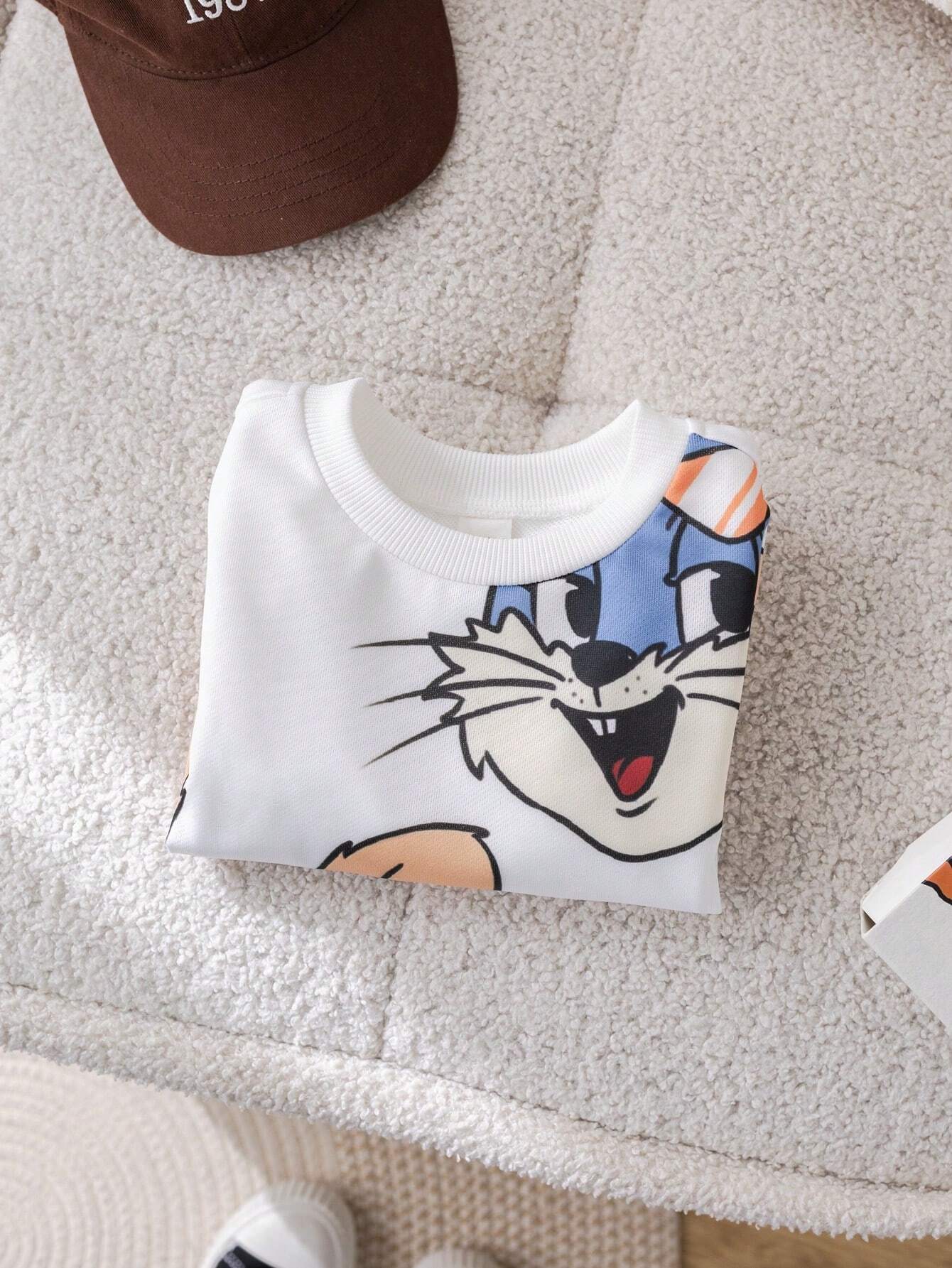 يُضفي هذا السويتشيرت الكرتوني الأبيض لمسة من المرح والأناقة على إطلالة طفلك اليومية.