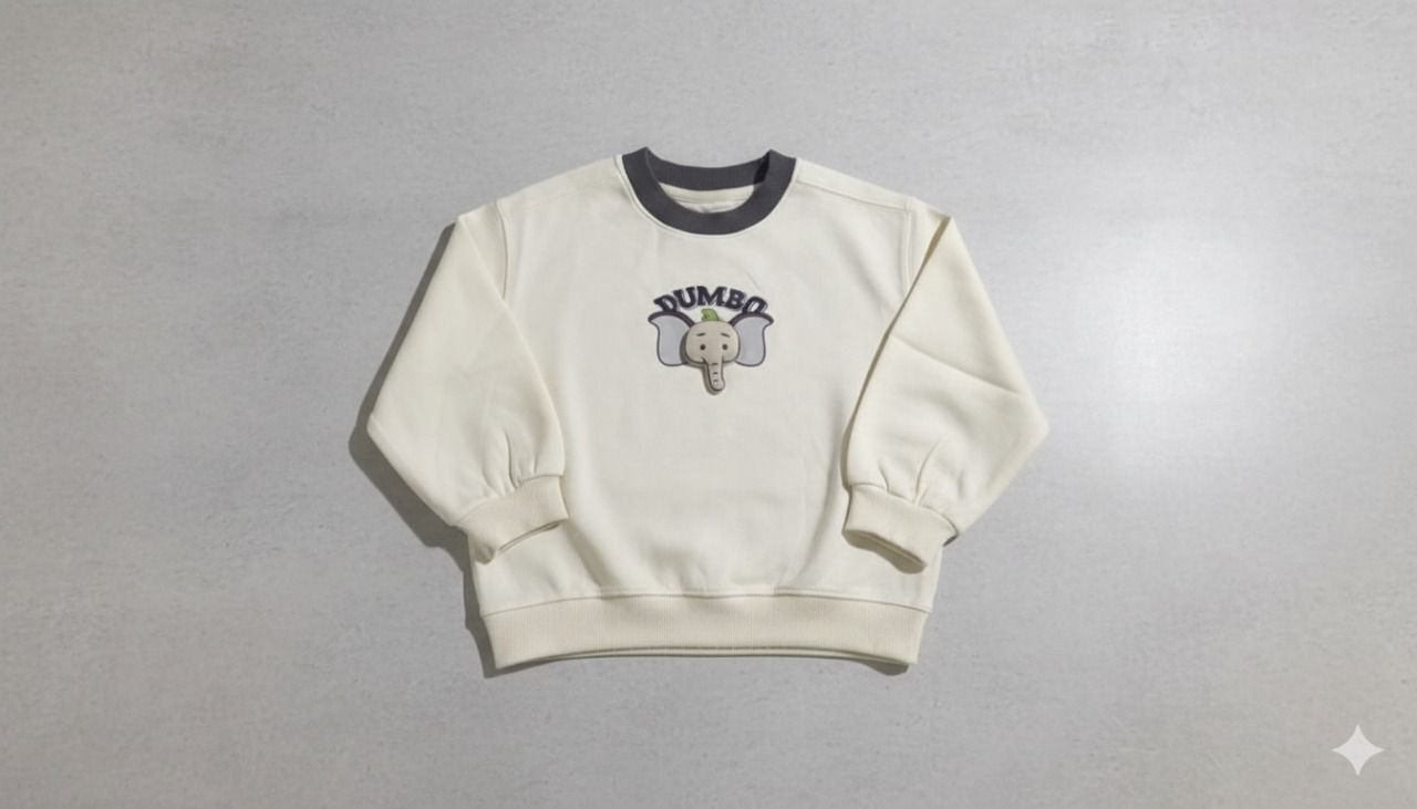 سويتشيرت أطفال كريمي قطني بطبعة كرتونية، تصميم مريح ودافئ مثالي للأيام الباردة