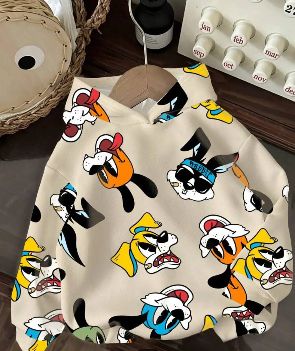 سويتشيرت أطفال مطبوع برسومات كرتونية قطن ناعم متعدد الألوان، تصميم عصري يناسب الإطلالات اليومية والمدرسية