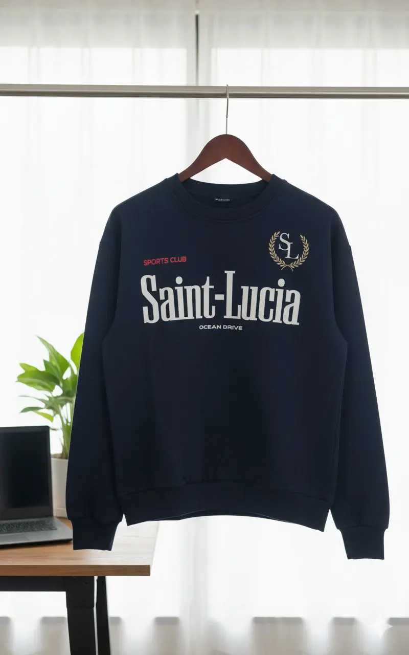سويتشيرت رجالي كاجوال كحلي بشعار Saint-Lucia، تصميم عصري وأكمام طويلة