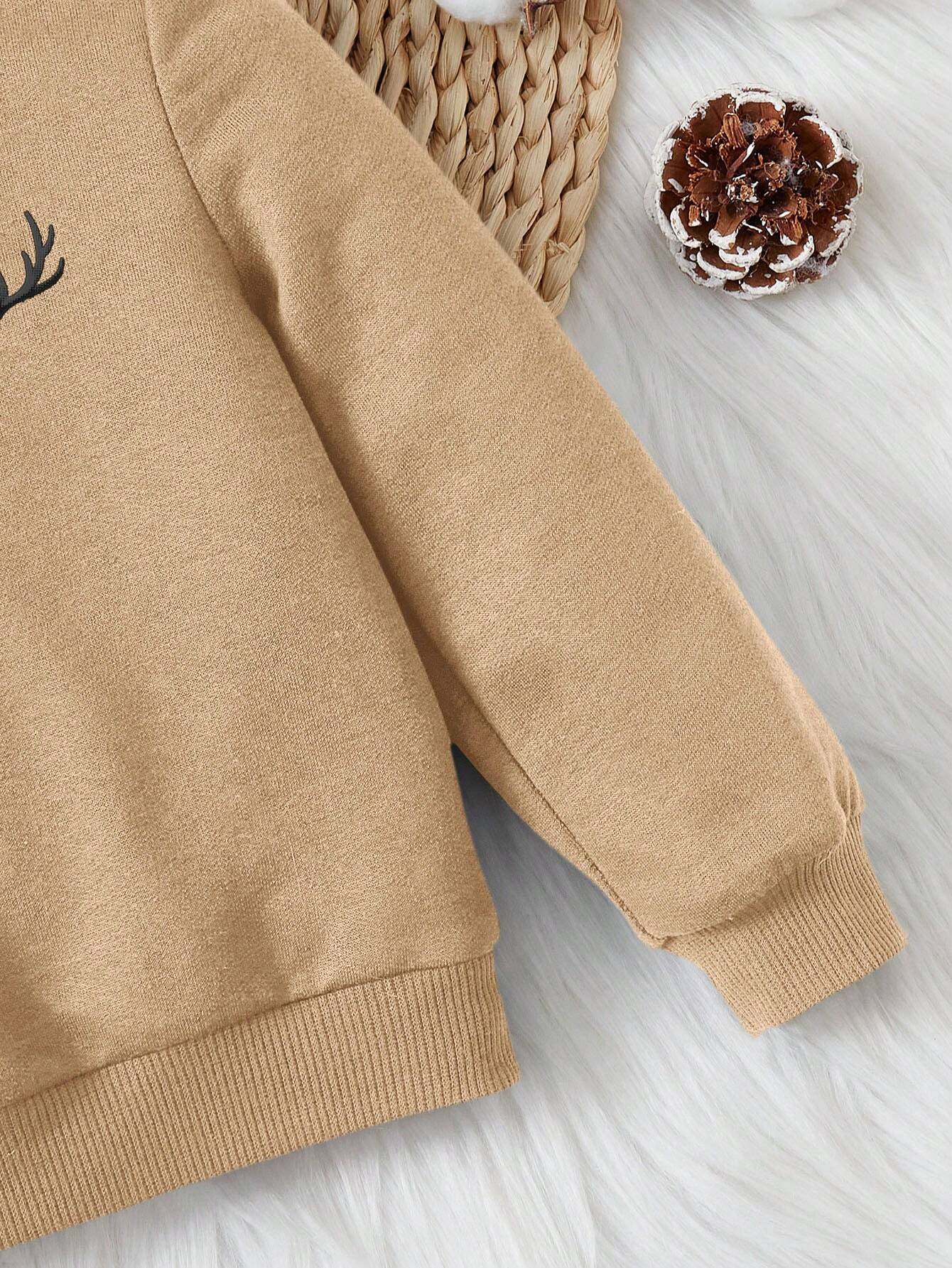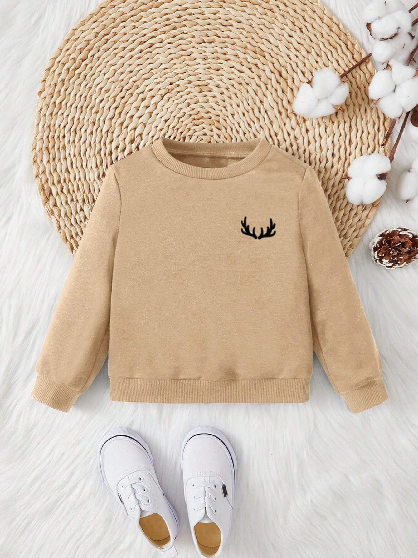 سويت شيرت أطفال بيج بطبعة قرون غزال، تصميم عصري وأنيق للخريف والشتاء