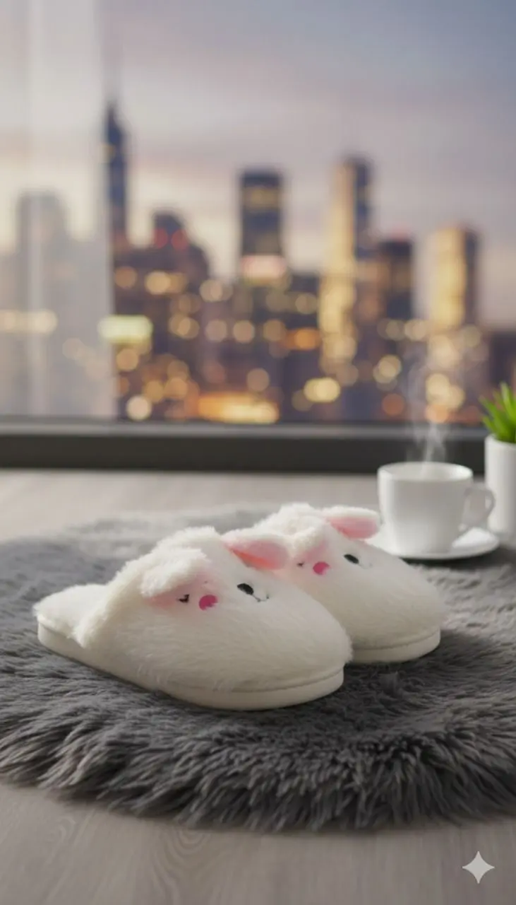 تُقدَّم هذه النعال النسائية الشتوية بتصميم يجمع بين الأناقة والدفء واللمسة اللطيفة، حيث تتميز بشكل أرنب جذّاب يضفي طابعًا مرحًا على الإطلالة المنزلية.