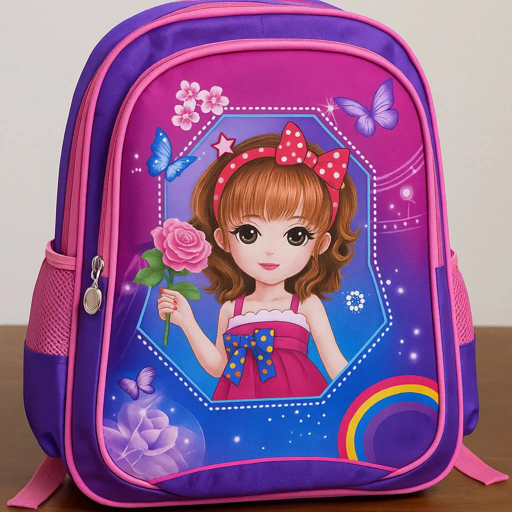 مصنوعة من خامة متينة تتحمل الاستخدام اليومي، كما تتميز بسعة واسعة تسع الكتب والأدوات المدرسية، مع جيوب جانبية شبكية لتخزين زجاجات المياه أو الإكسسوارات الصغيرة.