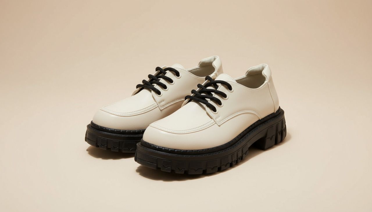 شوز لوفر نسائي عاجي من الجلد بنعل سميك مانع للانزلاق، تصميم عصري مريح وأنيق، يناسب الاستخدام اليومي والمناسبات غير الرسمية