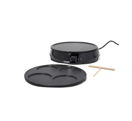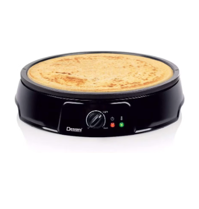 Enjoy an easy and consistently delicious breakfast using the dessini electric crepe and sandwich maker every lunch lover’s dream. With multiple functions, you can make crepes, egg pancakes, bacon and lots of breakfast delight! No more half baked strips or more pancakes. This crepe maker has a powerful 1200w heating feature that heats the crepe pan quickly while the precise temperature knob makes it easy to make breakfast just the way you want it. The red light indicator lets you know when the crepe tray is running while the green light indicates when the desired cooking temperature has been reached.