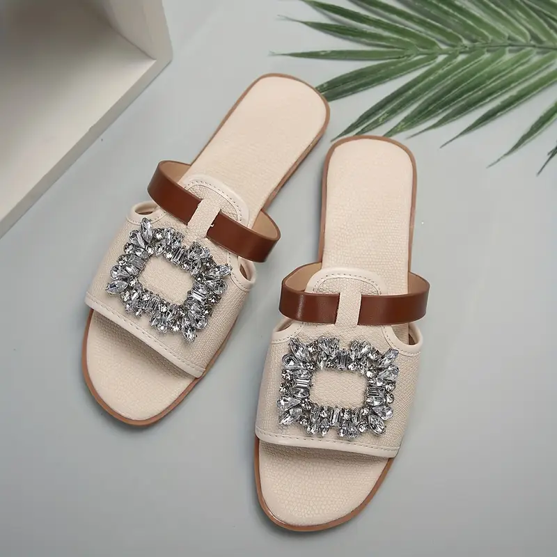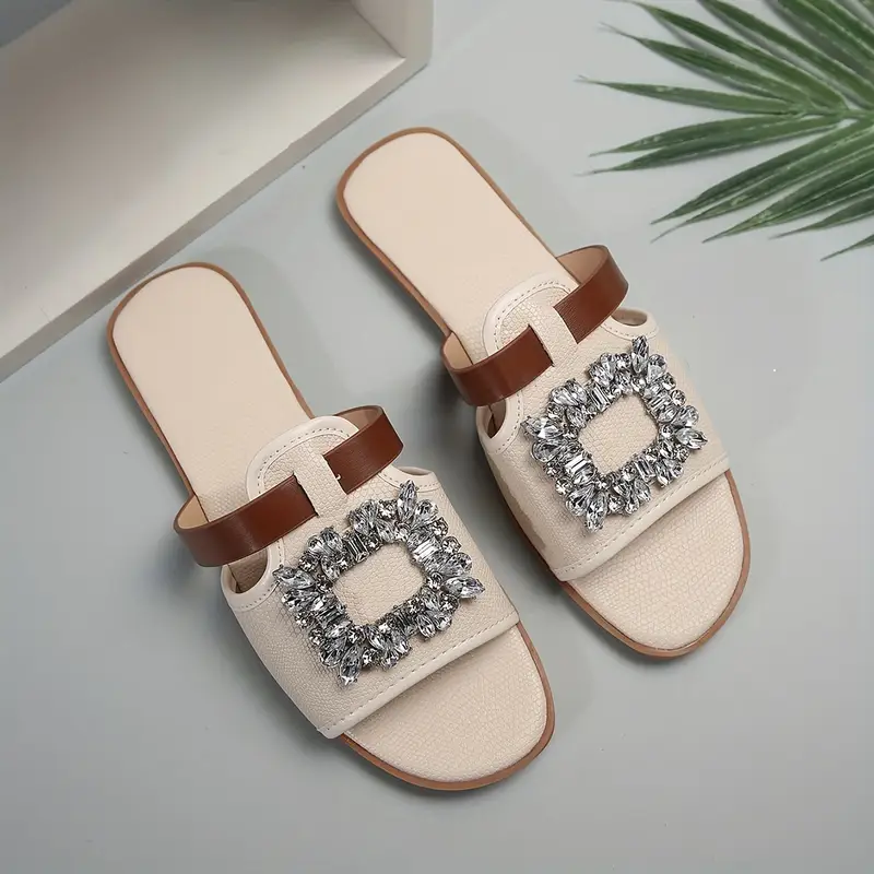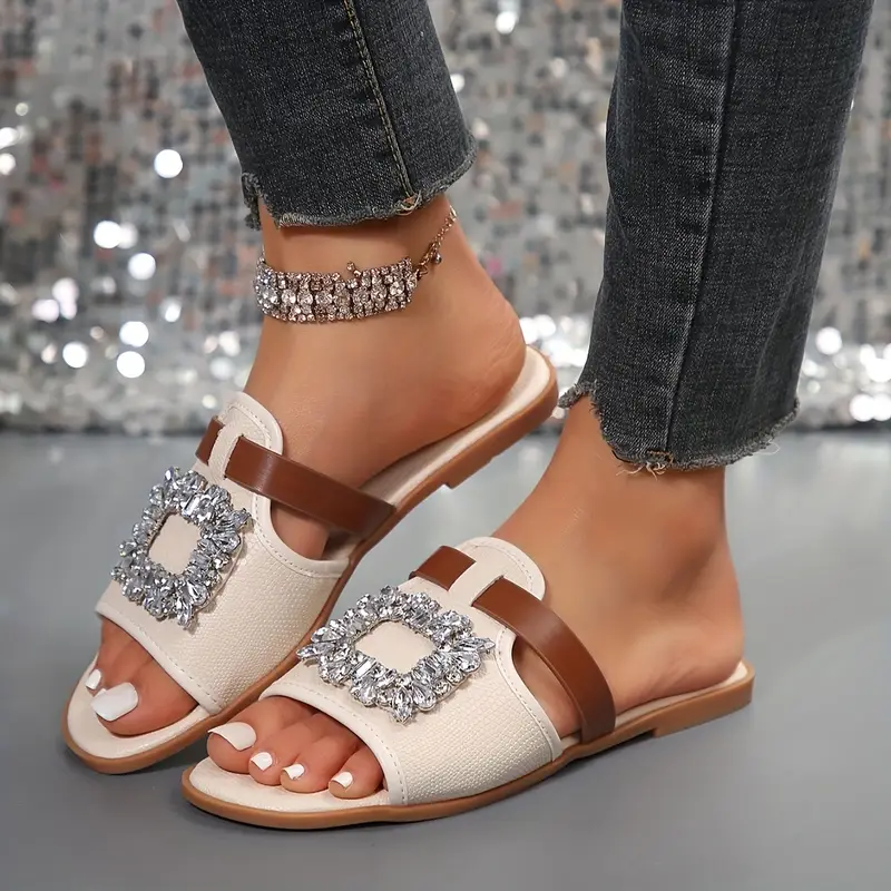 صندل نسائي صيفي كاجوال مزين بالراين، خفيف ومريح للشاطئ، مثالي للإطلالات الصيفية الكاجوال