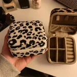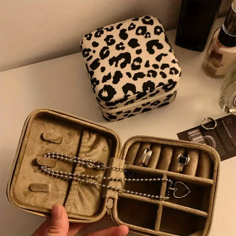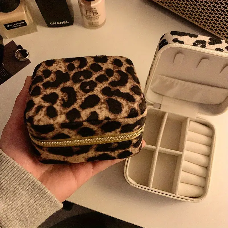 صندوق مجوهرات بطبعة فهد مع سحاب، منظم إكسسوارات للسفر بتصميم أنيق ومريح، مثالي للاستخدام أثناء السفر والمناسبات