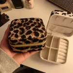 صندوق مجوهرات لون بيج ,صندوق مجوهرات مطبوع بنقشة الفهد |