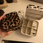 يُعد صندوق المجوهرات الكلاسيكي بطبعة الفهد خيارًا مثاليًا للنساء الباحثات عن الأناقة والتنظيم أثناء السفر. تصميمه العملي والأنيق يجمع بين الوظيفة والذوق الرفيع، ليحافظ على مجوهراتك مرتبة وآمنة في أي وقت وأي مكان.