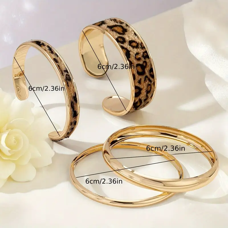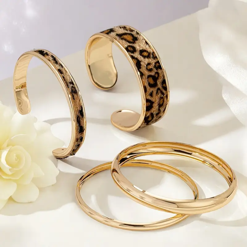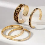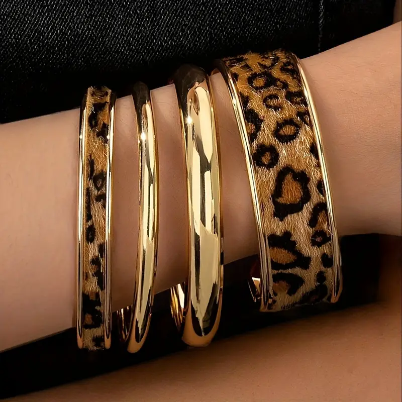 طقم أساور نسائية بنقشة فهد، إكسسوارات بانك عتيقة قابلة للتكديس بلمسة يدوية، مثالية للتنسيق مع مختلف أنماط الأزياء