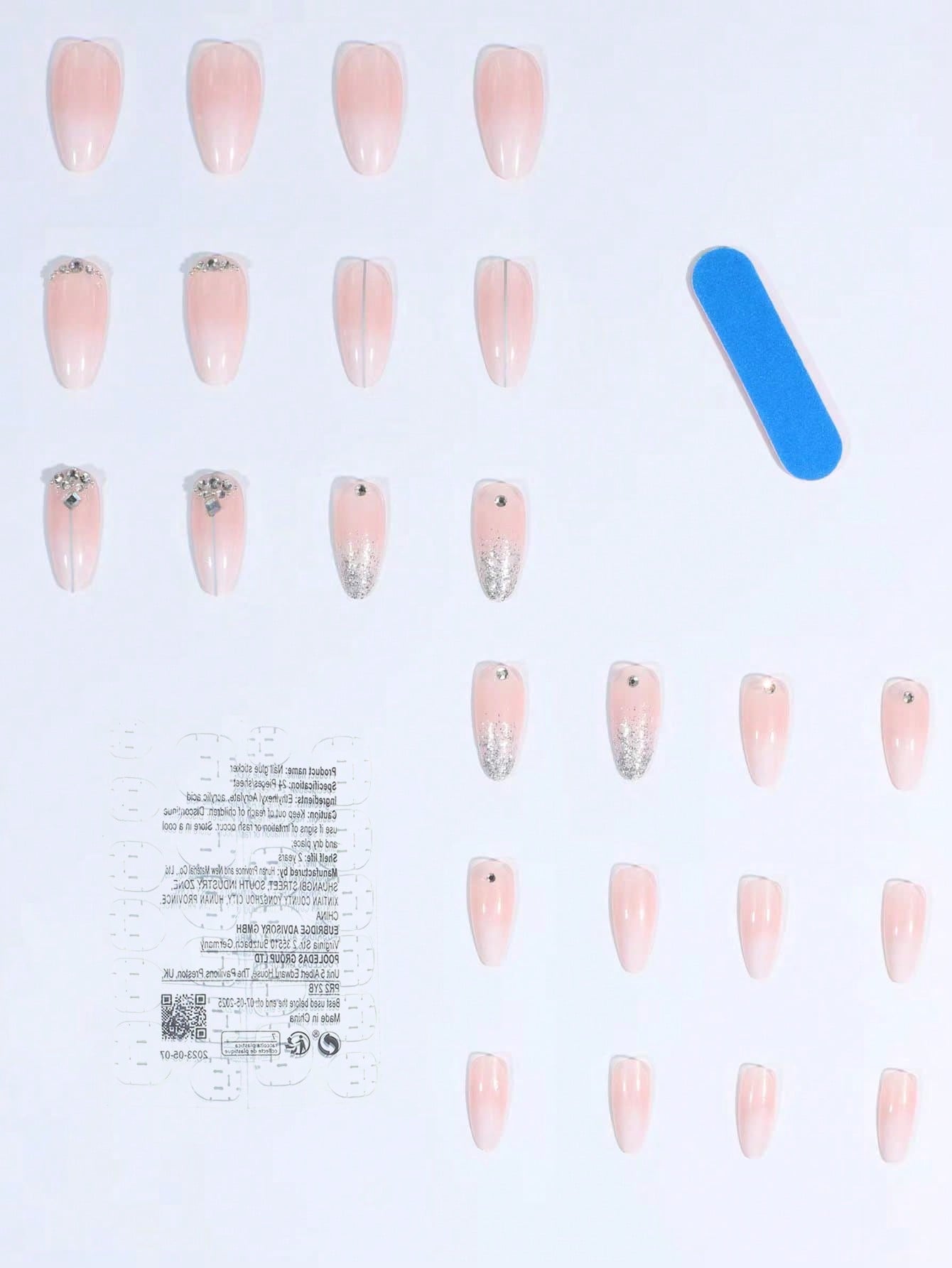 طقم أظافر صناعية لوزية جاهزة، 24 قطعة مع أدوات، تصميم عصري وأنيق يناسب الحفلات، الرقص، والخروج اليومي