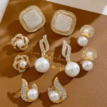 طقم أقراط لؤلؤية نسائية هندسية، 5 أزواج أنيقة بأسلوب فرنسي كلاسيكي، يتناسق بسهولة مع مختلف أنماط الملابس