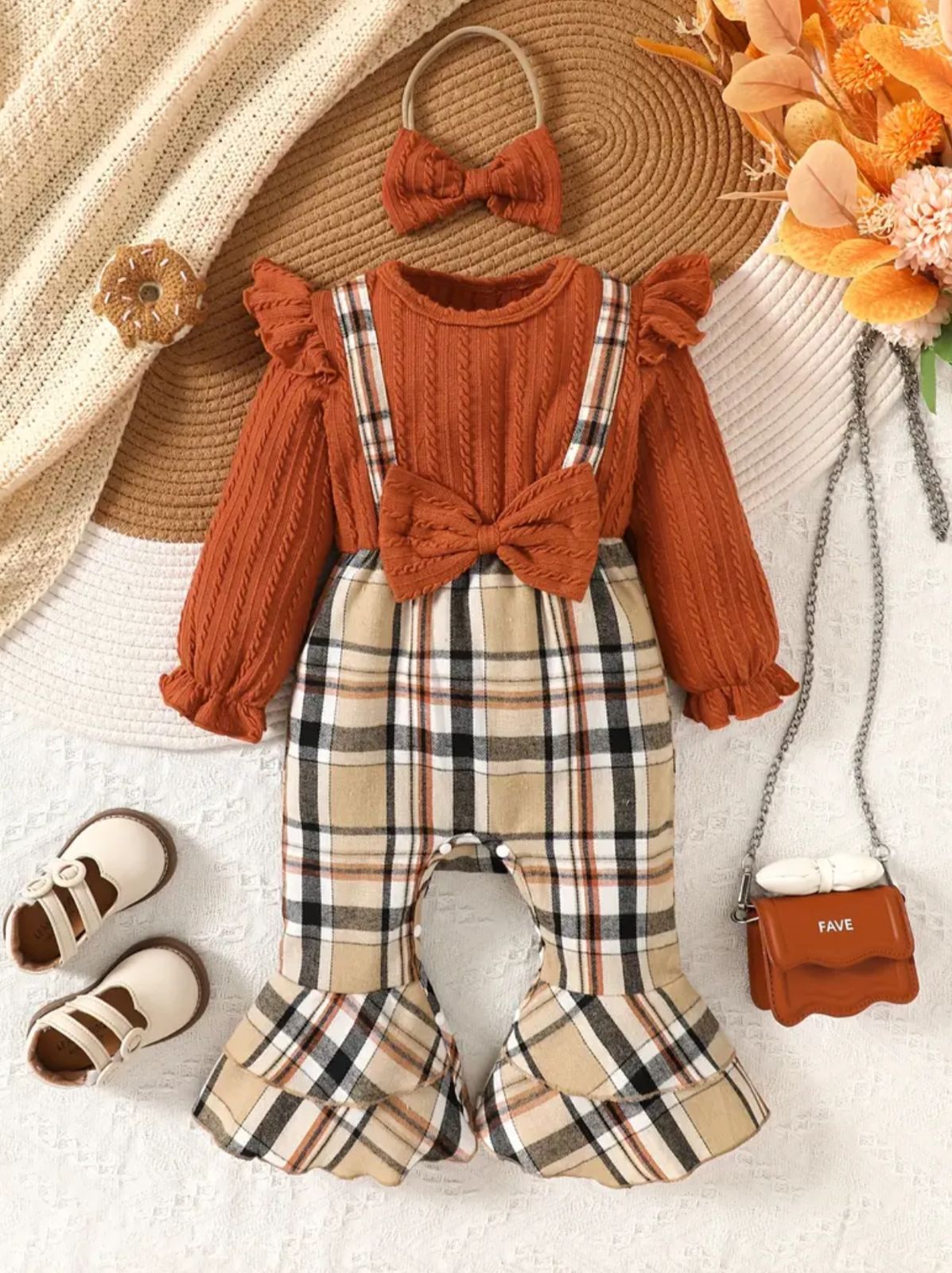 يأتي هذا الطقم البناتي الأنيق المكون من 3 قطع ليمنح طفلتك إطلالة متكاملة تجمع بين الدفء والذوق الرفيع. يتكون من بلوزة قطنية مضلعة وسالوبيت بنقشة الكارو الكلاسيكية مع فيونكة شعر مطابقة، ليضفي مظهرًا متناسقًا مثاليًا لأيام الخريف والشتاء.