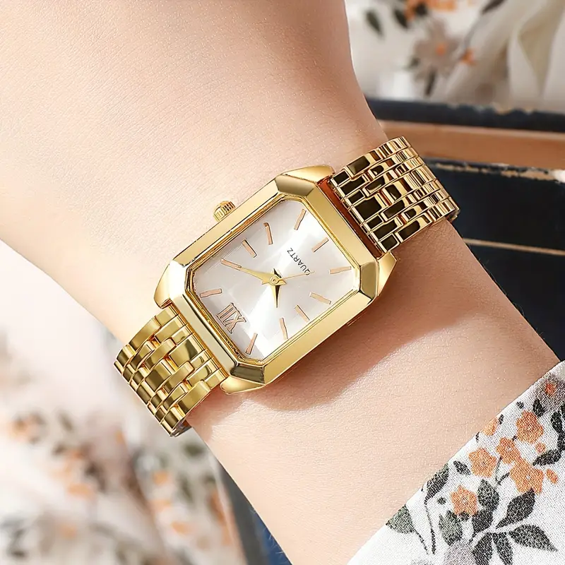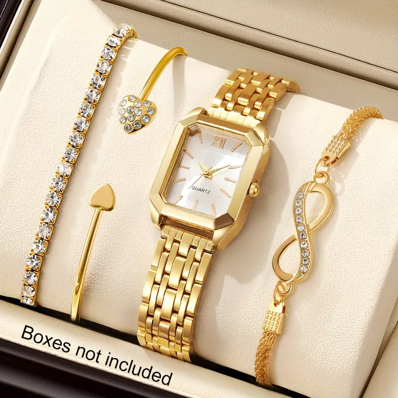 طقم ساعة رقمية نسائية ذهبية، 4 قطع أنيقة مثالية كهدية فخمة في مختلف المناسبات