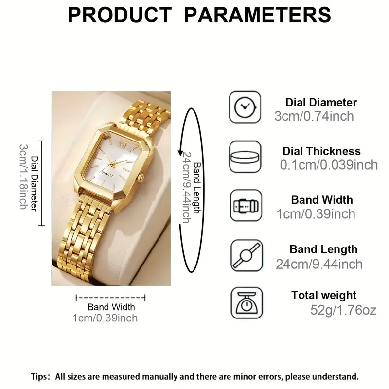 نقدم لكِ طقم الساعة الفاخر المصمم بأناقة فريدة، والمكوّن من 4 قطع متكاملة تجمع بين الرقي والعملية. بفضل التصميم العصري للساعة المربعة وسوار الرقم 8 الذهبي المميّز، يعتبر هذا الطقم اختيارًا مثاليًا لهدية تعبّر عن الذوق الرفيع في المناسبات الخاصة مثل عيد الأم، عيد المعلم، عيد الحب أو التخرج.