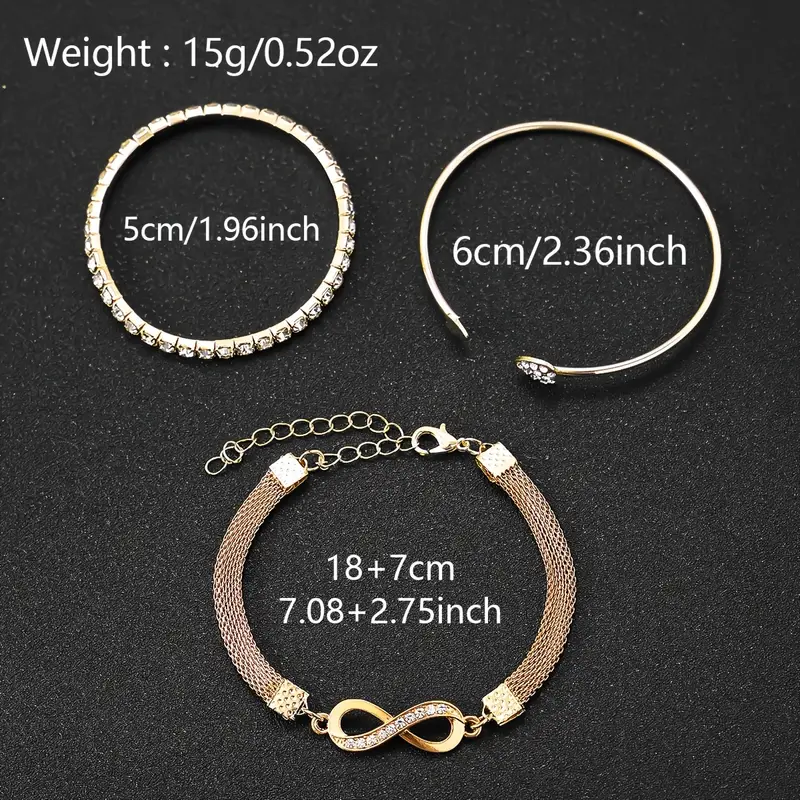 عدد القطع: 4 قطع (ساعة + 3 أساور متنوعة)