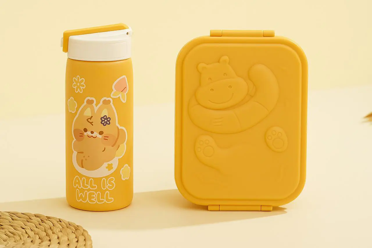 امنحي طفلك تجربة يومية ممتعة وعملية مع طقم مميز مكون من لانش بوكس وزجاجة مياه حرارية، مصمم برسومات كرتونية لطيفة تجذب الأطفال وتشجعهم على تناول الطعام والشراب بشكل صحي ومنظم سواء في المدرسة أو أثناء الرحلات.