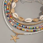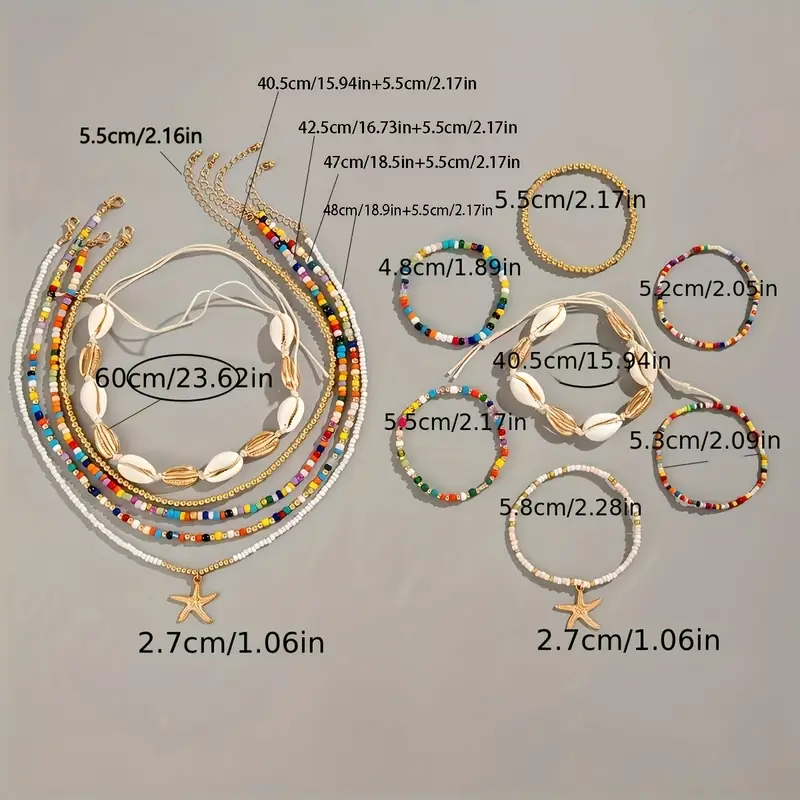 طقم مجوهرات بوهيمي 12 قطعة، أصداف ونجوم بحر بألوان عشوائية لإطلالة صيفية مميزة