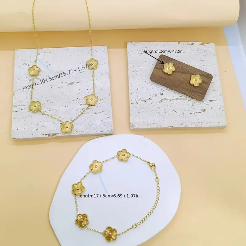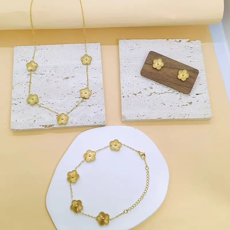 طقم مجوهرات نسائي عصري 4 قطع، زهور أنيقة بتقنية القص الليزري، يتماشى مع الأزياء الكاجوال والرسمية
