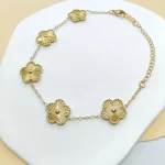 للباحثات عن الأناقة الهادئة والتصميم العصري البسيط، نقدم لكِ هذه المجموعة المتكاملة من المجوهرات النسائية. تتكون من أربع قطع أنيقة تشمل قلادة، أقراط، وسوار، جميعها مزينة بزخرفة زهور بخمس أوراق مقطوعة بدقة باستخدام تقنية الليزر، لتجمع بين البساطة والجمال في تصميم واحد. مثالية للإطلالات اليومية أو لمناسباتكِ الخاصة.
