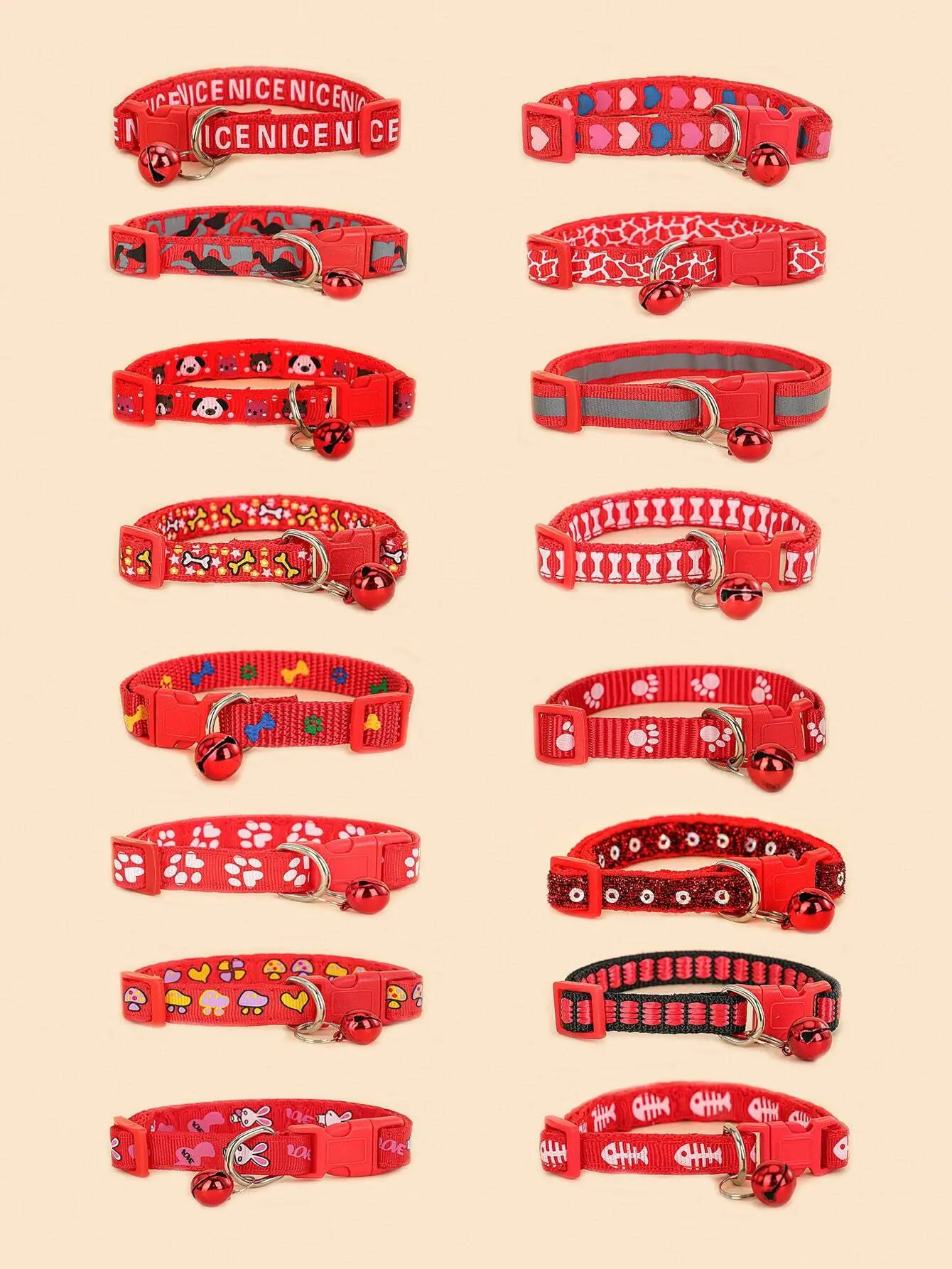 🐶🐱🔔 طوق كرتوني مزخرف للقطط والكلاب بنقوش عشوائية وجرس
