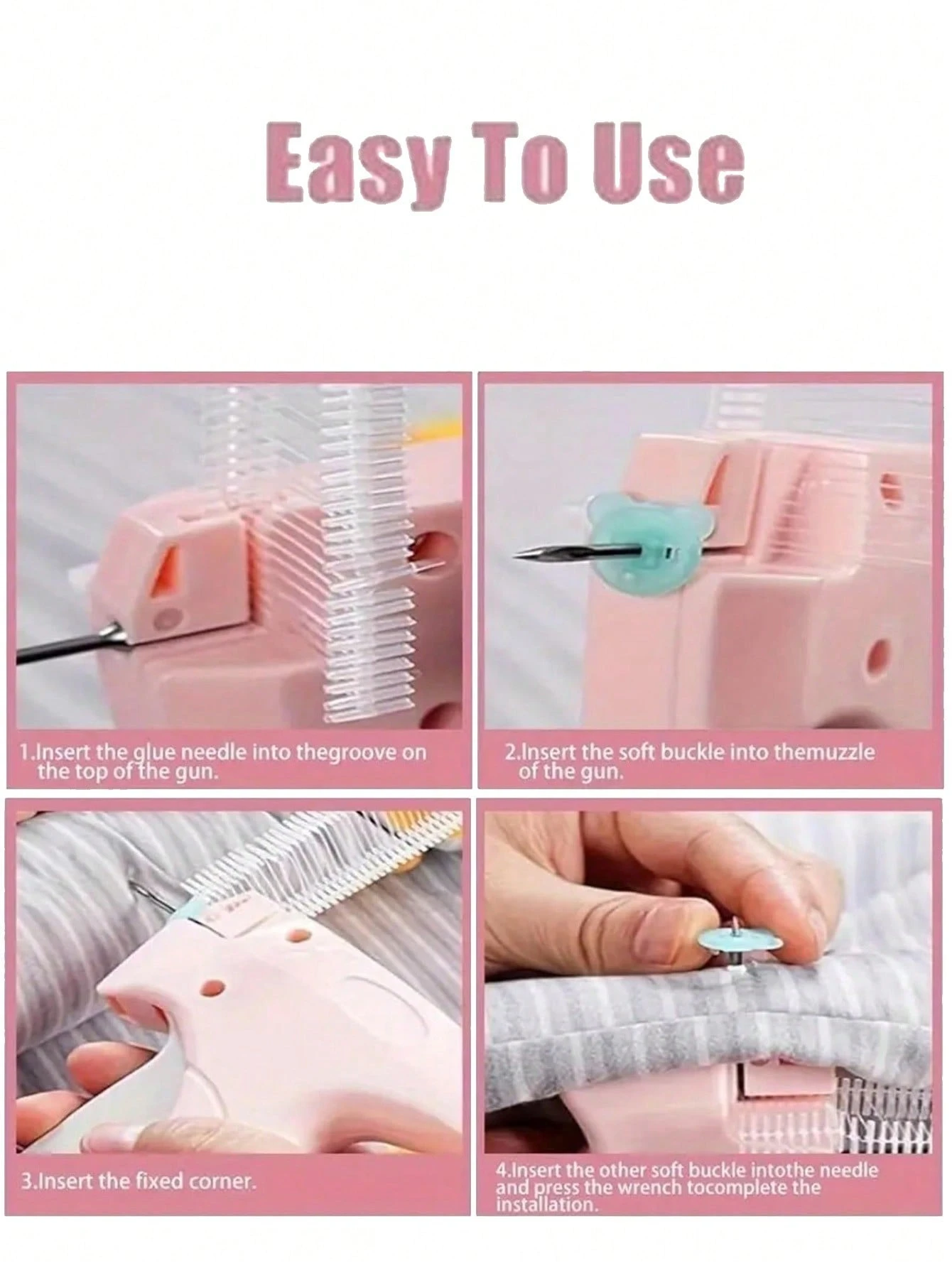الاستخدام: إصلاح سريع للملابس، تثبيت الشراشف، تثبيت زر، خياطة بدون أثر