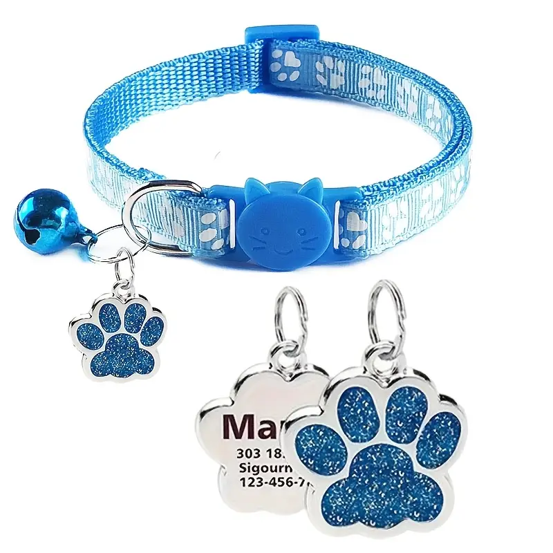 نقدم لكم علامة تعريف الحيوانات الأليفة المصنوعة بتقنية النقش المخصص، والتي تجمع بين الأمان والأناقة في تصميم كرتوني جذاب. هذه العلامة مصنوعة من ألياف البوليستر عالية الجودة، مع طوق قابل للتعديل يناسب القطط والكلاب، مزودة بجرس لطيف وسحر بطبعة كف لامعة. تساعدك هذه العلامة على حماية حيوانك الأليف من الفقدان بسهولة وبشكل أنيق.