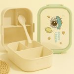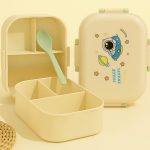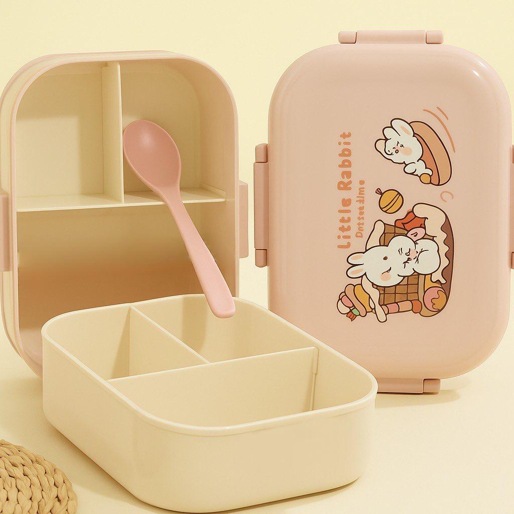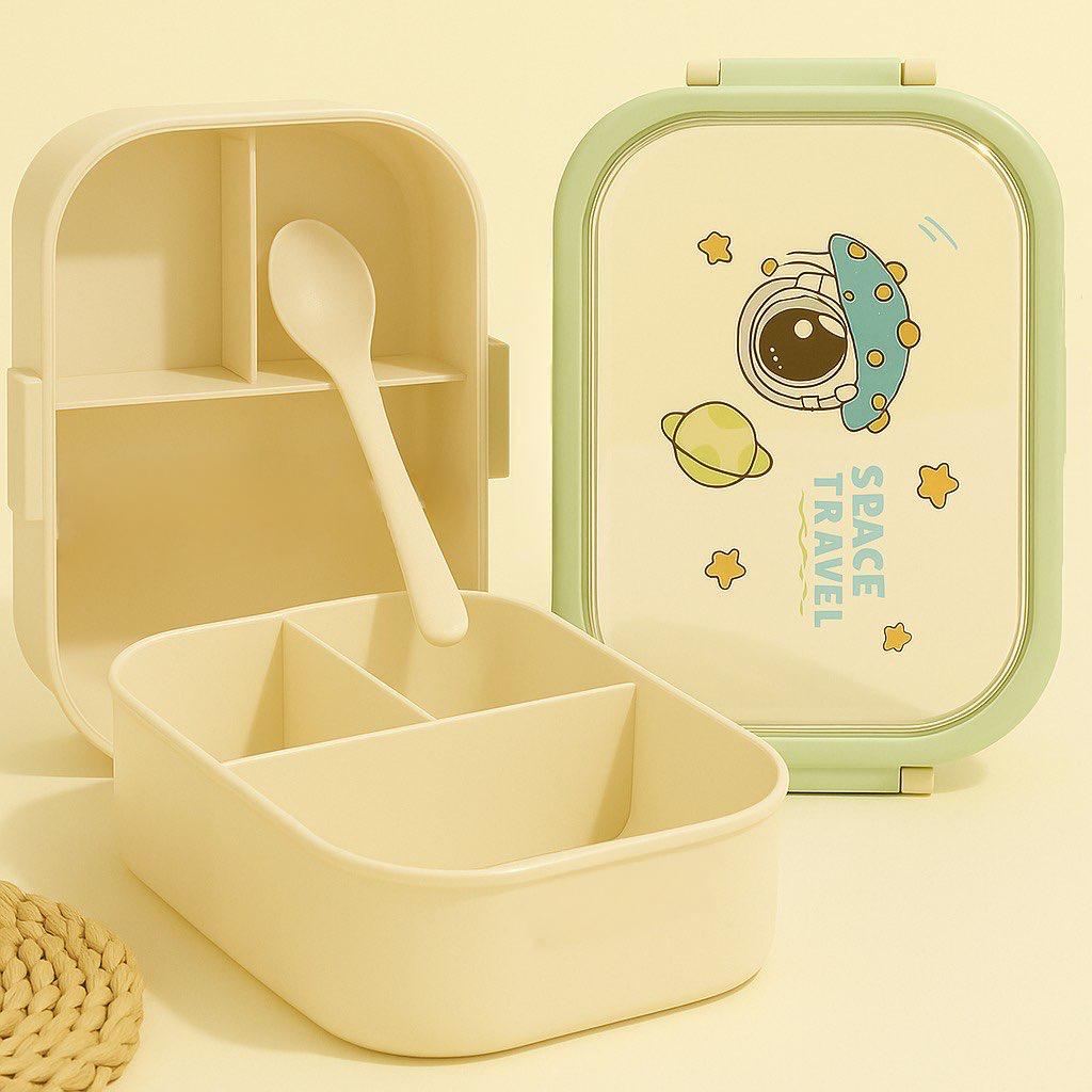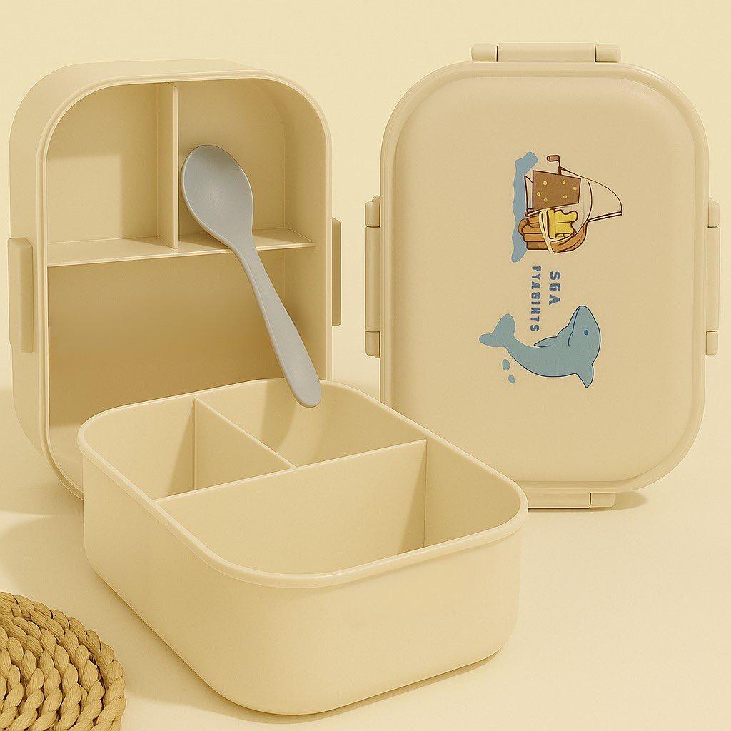 علبة لانش بوكس للأطفال مقسمة بألوان متعددة ورسومات متنوعة مع ملعقة، آمنة وخفيفة للمدرسة