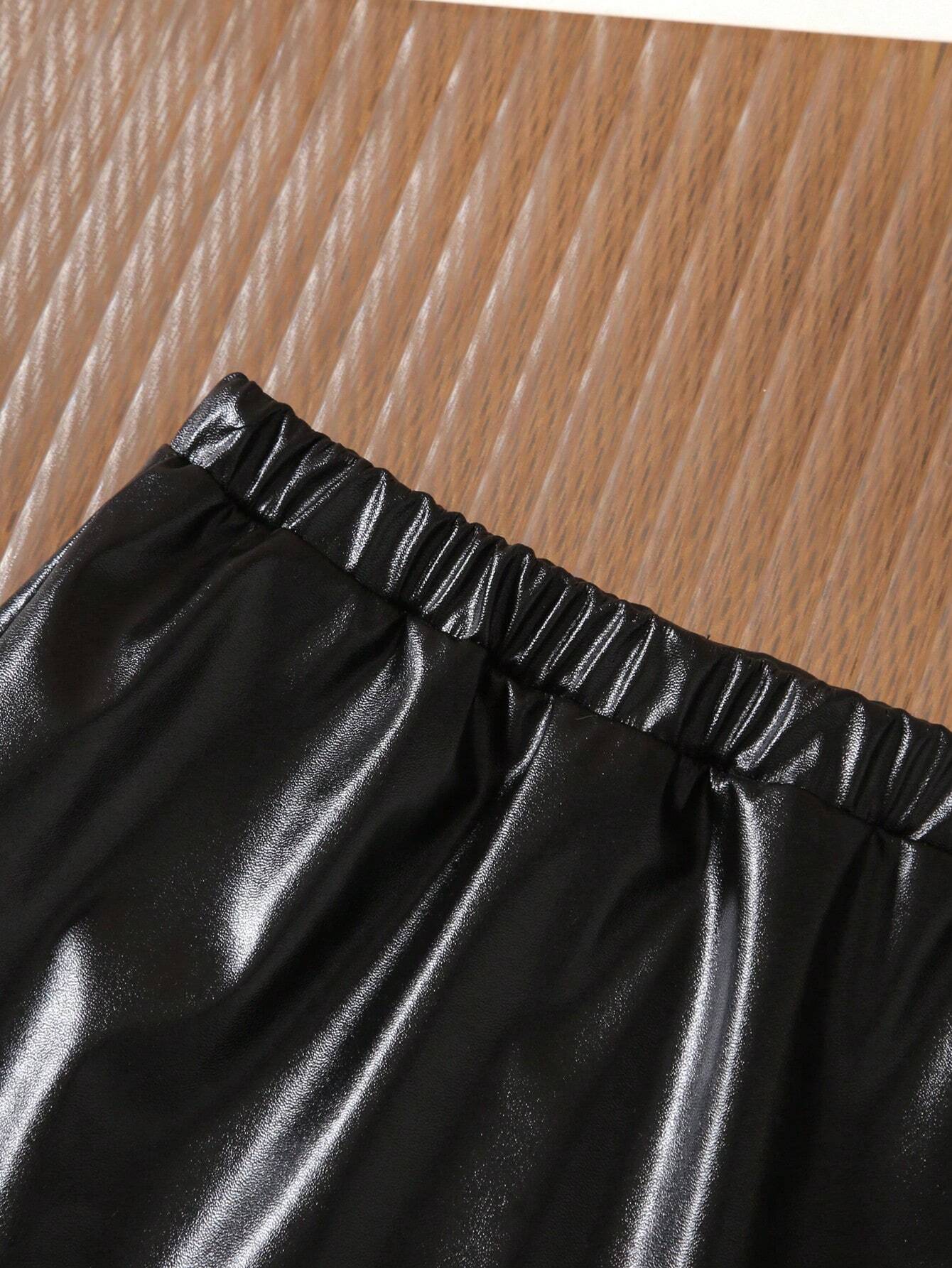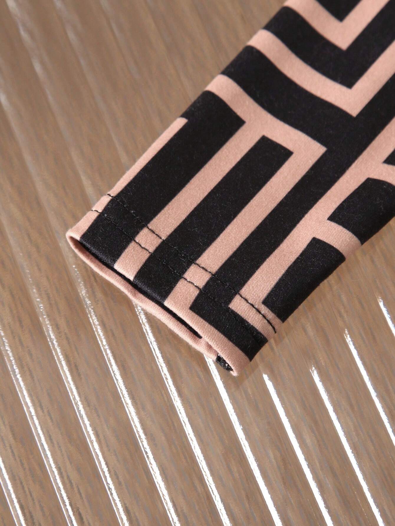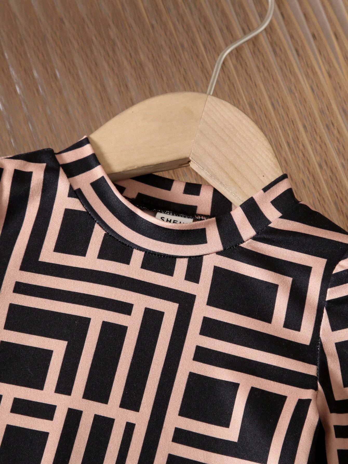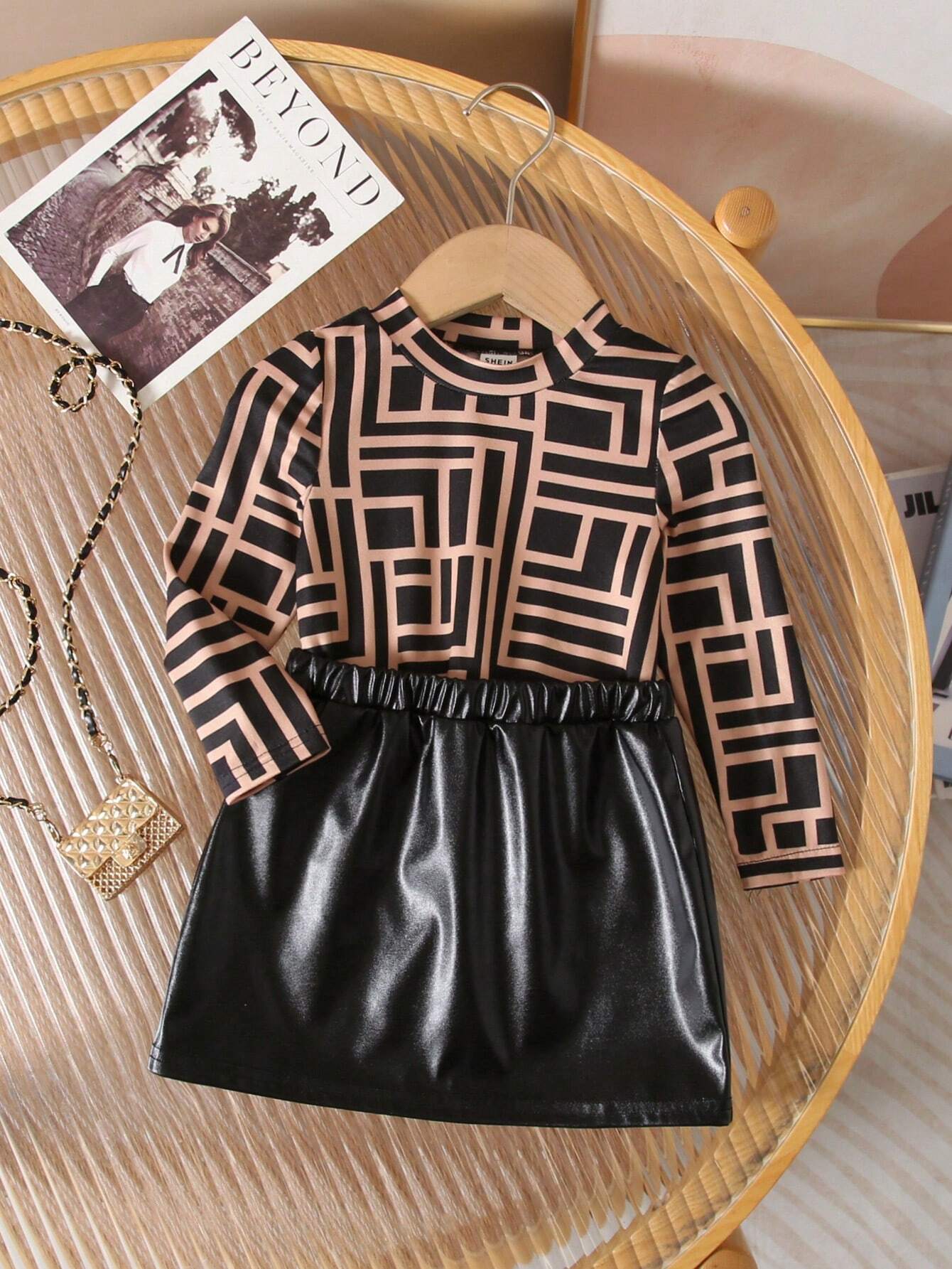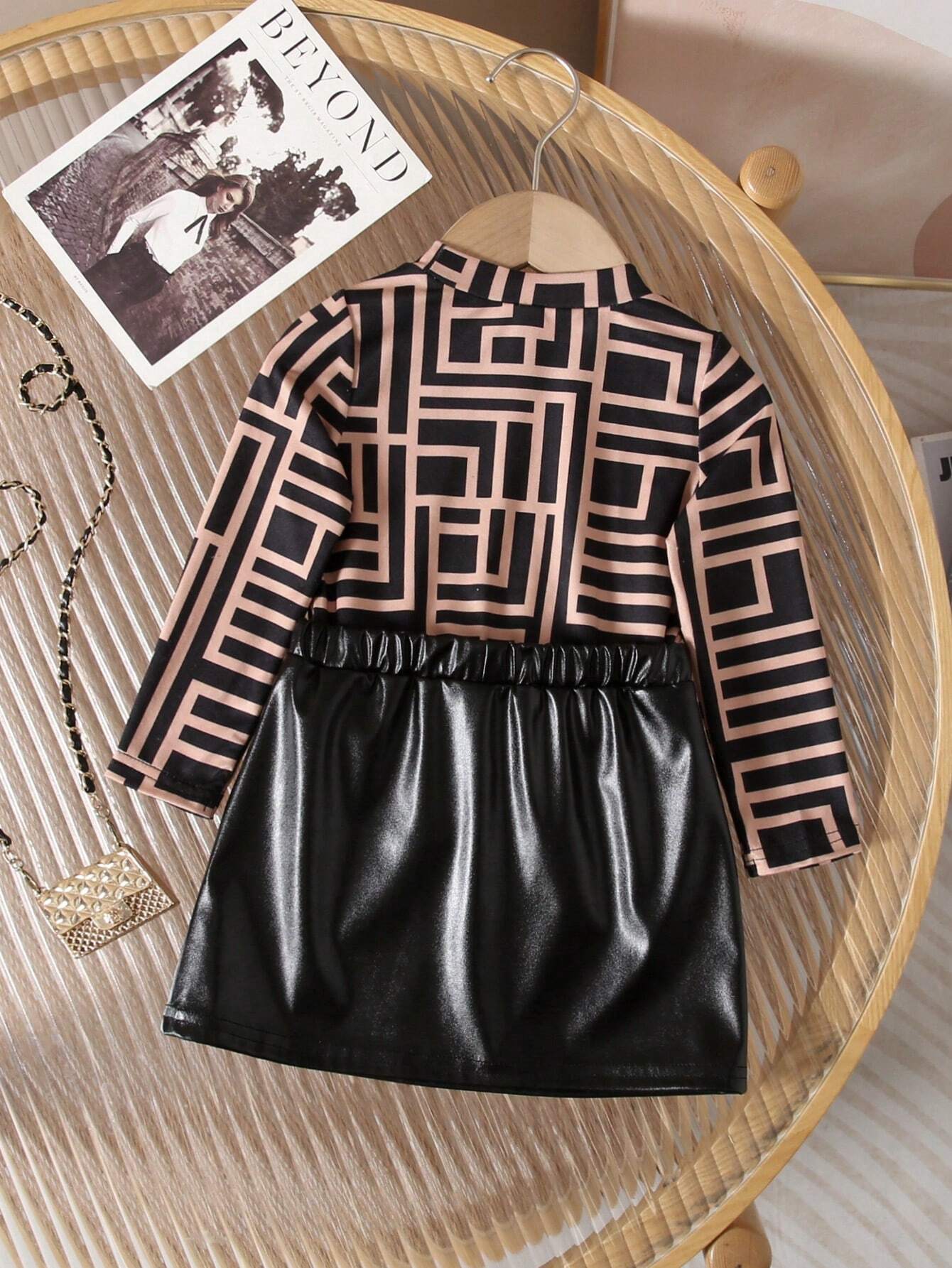 فستان أطفال بنقشة هندسية وجيب جلد، تصميم أنيق وعصري للمناسبات