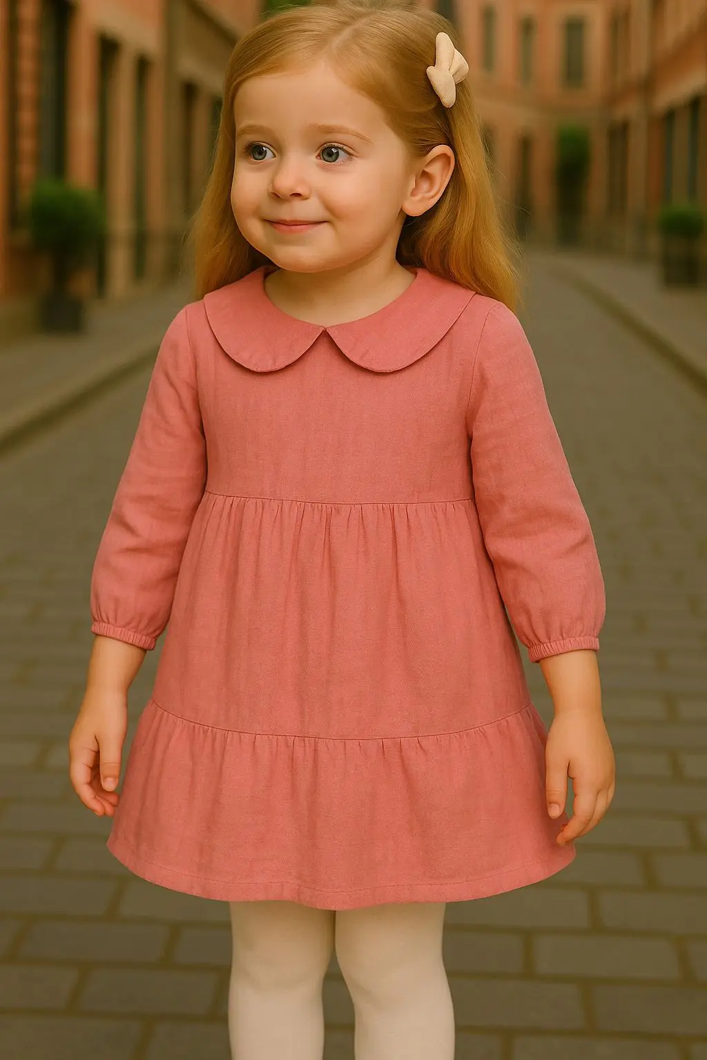 فستان بناتي أنيق مصنوع من خامة الكتان الناعمة بلون وردي غامق، يجمع بين اللمسة الكلاسيكية والبساطة الراقية. تصميمه المميز بياقة دائرية يمنح إطلالة ناعمة مثالية للمناسبات اليومية أو الإطلالات الأنيقة الهادئة.