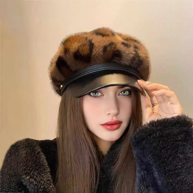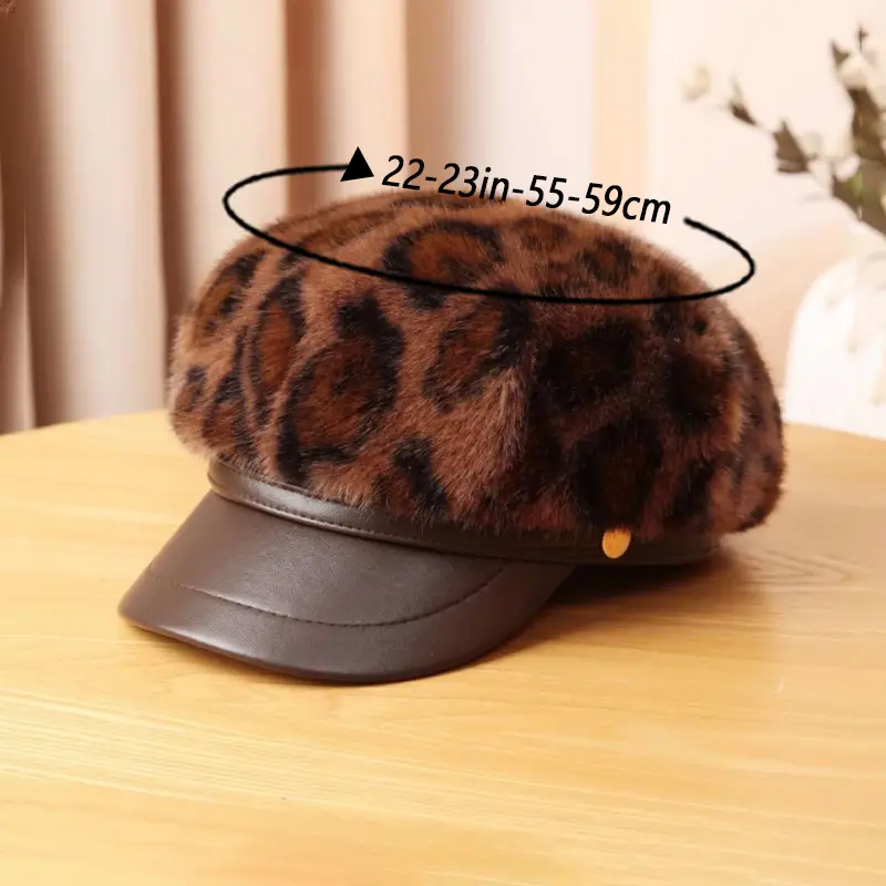 قبعة بيريه نسائية بنقشة جلد الفهد، دافئة وعصرية للخريف والشتاء، مقاس كبير مناسب لمعظم الأحجام