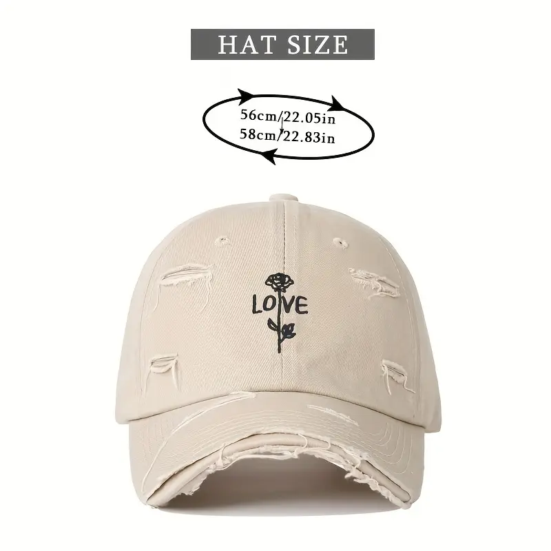 قبعة بيسبول نسائية بيضاء مطرزة بتصميم وردة وكلمة LOVE، خفيفة قابلة للتعديل للجولف والأنشطة الصيفية