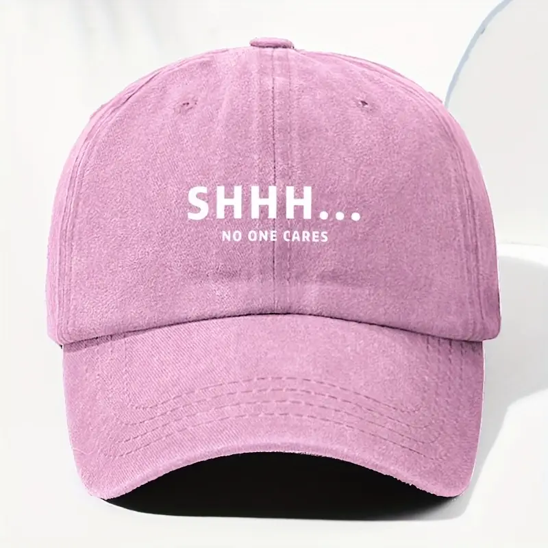 قبعة بيسبول نسائية وردية مغسولة مطرزة “Shhh… No One Cares”، قبعة خفيفة قابلة للتعديل بتصميم عصري للحماية من الشمس