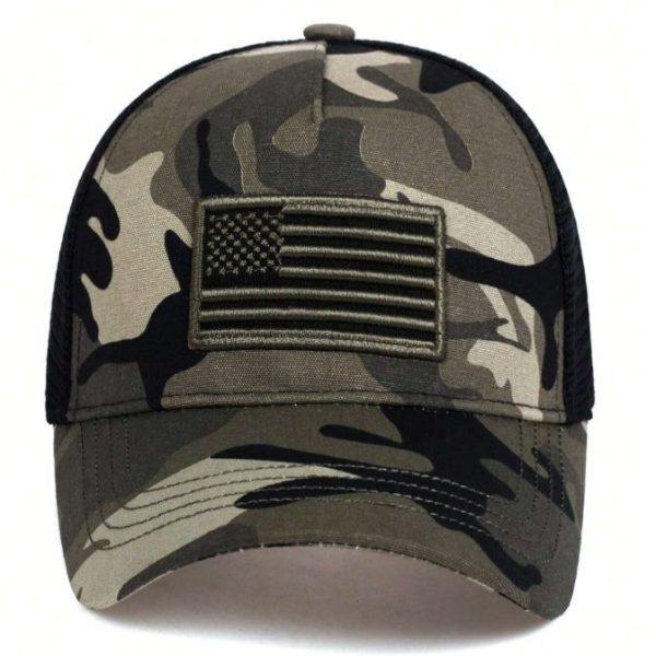 كاب بيسبول رجالي شبك مطرزة بعلم الولايات المتحدة