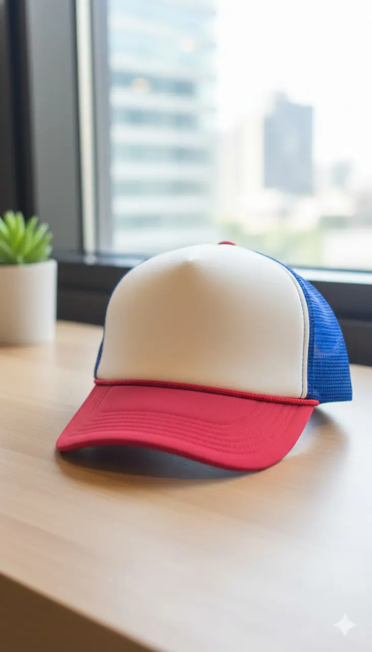 هذه القبعة تستعيد مجد تصاميم الثمانينات والتسعينات. الألوان المتباينة (الأحمر والأبيض والأزرق) تجعلها قطعة مميزة وجذابة للغاية، سواء اخترت تركها سادة أو إضافة شعار مخصص عليها. إنها قطعة أساسية لكل من يتبع أسلوب الـ “ريترو” أو يحب الإطلالات الصيفية الحيوية.